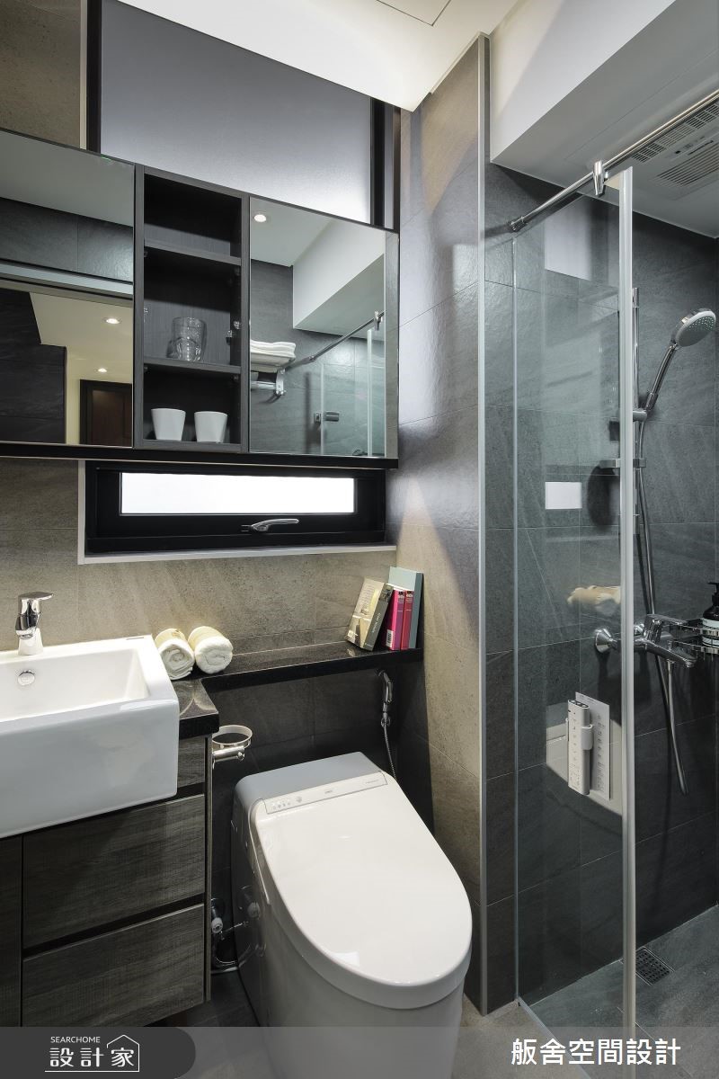 由於非常喜愛設計師夾層的作品,期待家中也能展現如此設計。整體空間以男性為主要的風格定調,調和灰階與深色木紋,營造出內斂且安定的家屋氛圍。 大面採光的優勢,引入充沛的戶外自然光,讓坪數不大且以白色為基底的空間更顯開闊、放大。白色系磁磚打造電視牆,半高牆體結合夾層空間的臥室領域,滿足生活機能且讓空間充分被利用。角落以中島擺設,界定出餐廚空間,滿足平時屋主下班或假日烹調的需求,以及邀請三五好友到家中齊聚一堂的樂趣;中島上方搭配懸空感的簡約吊櫃設計,櫃體下方以玻璃隔間,不僅強化收納同時也兼具美學展示;冰箱嵌入壁面的手法,讓空間達到寬敞,且形塑流暢的行走動線,而金屬質感的冰箱替簡約的空間增添一抹時尚質感,擦亮視覺新意。 小編的最愛 延著踏階來到臥室空間,透過玻璃拉門與牆面界定內外領域,穿透的特性讓公領域的光源也能進入,提高空間的明亮度;床頭背板以深色木紋妝點,隨著嵌燈映照,調和靜謐、安定的休憩環境。