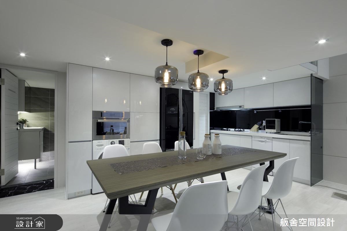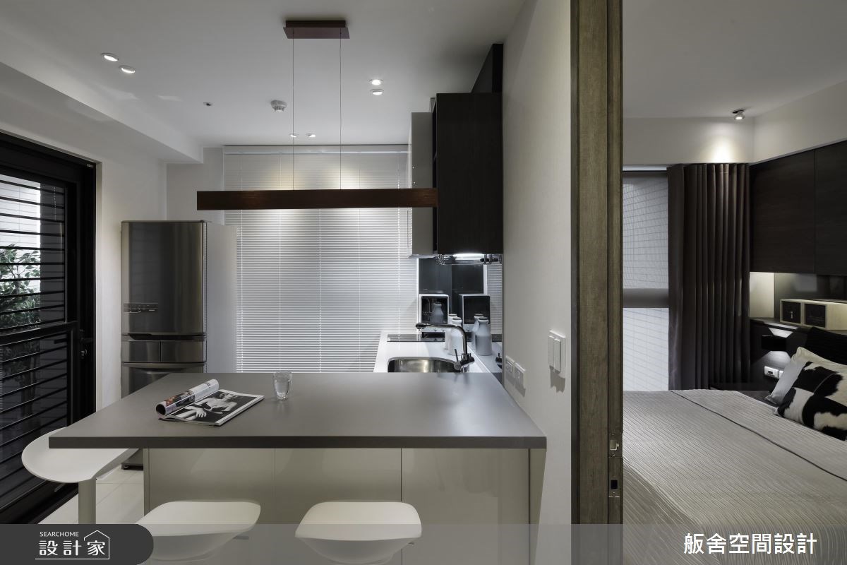 富有品味的年輕夫妻購置位於近郊山區的 30 坪居宅,屋案有著極佳基地條件,包含大面積開窗及可以看見 101 的視野!但卻因 30 年屋齡,有漏水潮濕與格局零碎問題,著請舨舍設計化解老屋問題,打造時尚現代宅邸。 由於男屋主是 3C 產品迷、女主人酷愛料理,因此設計師以前衛時尚的金屬感為主軸,並設計帶有完整專業機能的中島廚房,滿足屋主夫妻的想望。除了防水基礎工程,設計師重整格局,將 3 房變為 2 房,其中一房兼具起居、書房,更可以保留給未來的小孩房用途。針對動線規劃,採複合式開放設計,襯托完美窗景、視野更顯開闊。玄關以金屬漆賦予大門時尚感,佐以穿透灰玻與板岩,打造耐髒的落塵區。公領域以純白色調為主軸,特別在客廳背牆做出凹凸溝縫設計,製造層次感,並兼顧隱藏收納櫃機能,與電視牆的鐵件形成輕重色對比。由於老屋有多樑柱問題,入門兩柱包覆金屬磚修飾,中間大樑則反其道而行,採色調凸顯手法虛化天花。中島廚房採石木桌板與結晶鋼烤,搭配花崗岩水槽,耐用又富有品味。以仿大理石磚材披覆內建無敵景色的浴室,並以坐式設計融入日式澡堂風格。 小編的最愛 由於屋主生活日夜顛倒,因此設計師貼心強調主臥遮光性,善用樑下空間增加床頭收納,另外與更衣間結合,以鐵件玻璃拉門與展示櫃打造宛如精品專櫃的氛圍。