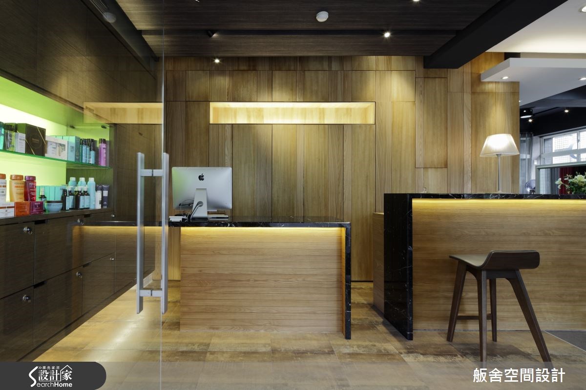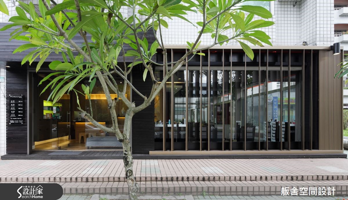 台北市隱身於綠意之後的一間 24 坪老屋,設計師替建物外觀注入簡單、俐落的線條,並圍塑金色古銅色調的格柵,打造出具時尚感的建物外觀,而內部空間則融入低調奢華元素,透過材質、色彩等表現空間魅力,快一起走進看看吧! 走入店內玄關,設計師於左側立面規劃展示櫃體,將美髮商品嵌進牆內空間,形成一幅機能、美感兼具的端景畫面,同時透過木質櫃台、溫潤地坪,搭配具暖意的黃光照明等,開啟紓壓清新的迎賓印象;延伸進入剪髮區,則在每個座位配置大面積鏡子,打造延伸感十足的開闊視感,天花板則加入局部降板規劃,以高低差做出屋高層次,並透過軌道燈的妝點,彰顯充滿舞台感的摩登風格,同時也在空間中裝飾垂墜柔軟的大紅布幔,形成搶眼的色彩焦點;洗頭區則以架高木地板形成界定,同時於天花板上注入格狀語彙,形成挑高的空間感,帶入一股島國紓壓氣息! 小編的最愛 洗頭區的牆面規劃別具巧思,設計師以燈光反射壁面,搭配居中陳列的擺飾品,營造出具禪風感的美麗端景,讓顧客可在此獲得身心靈的全然放鬆!