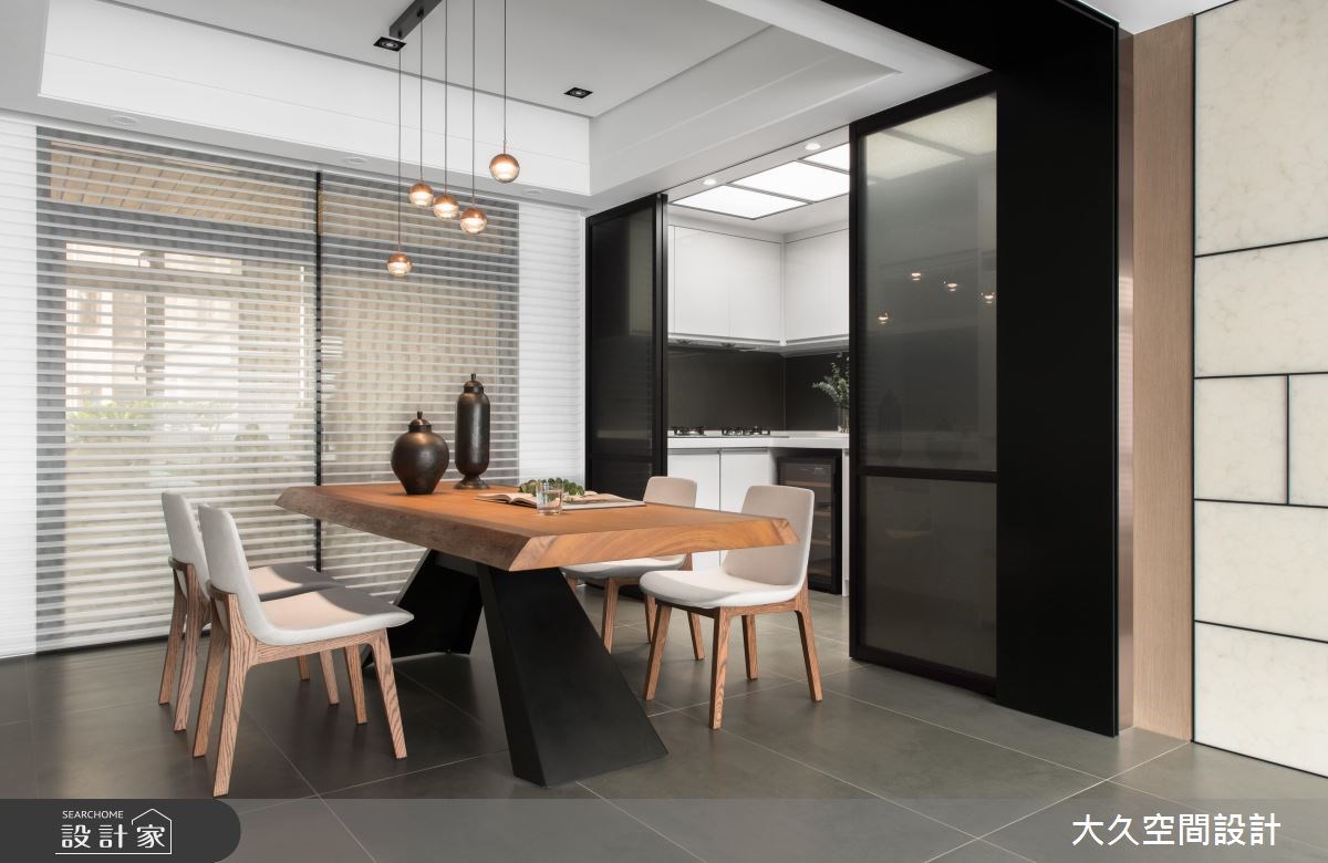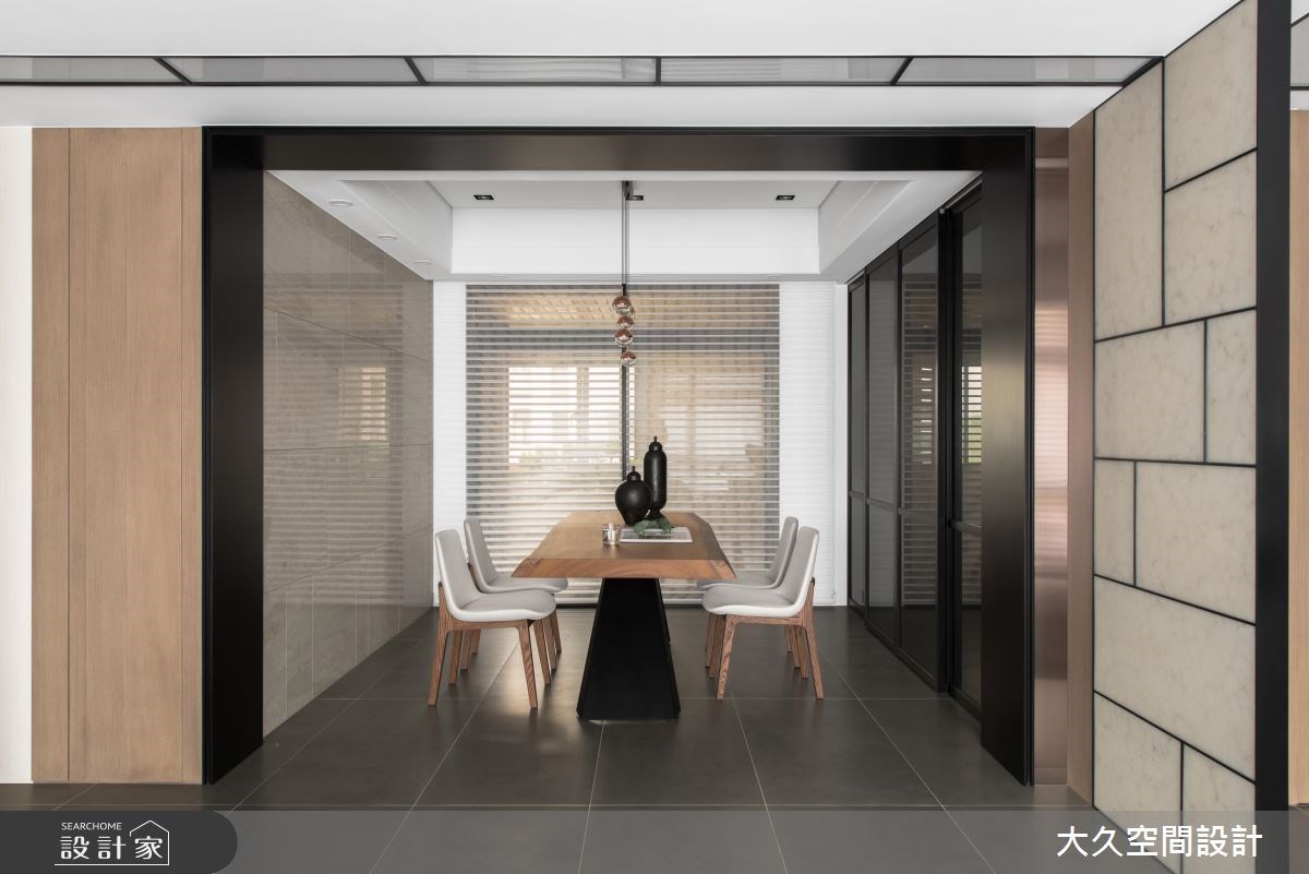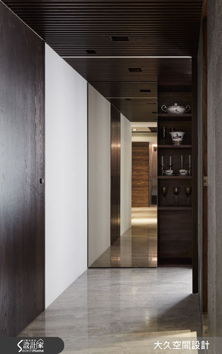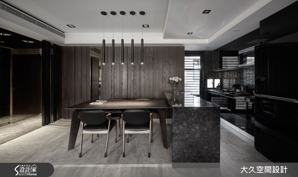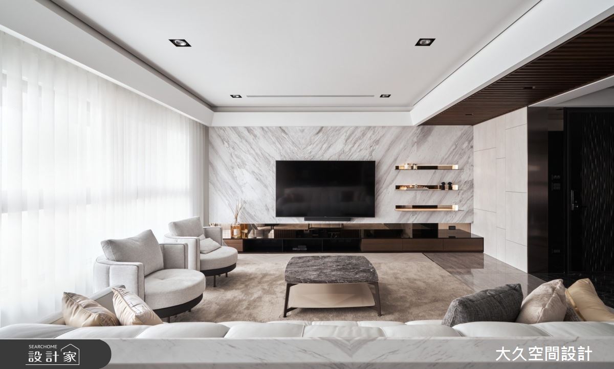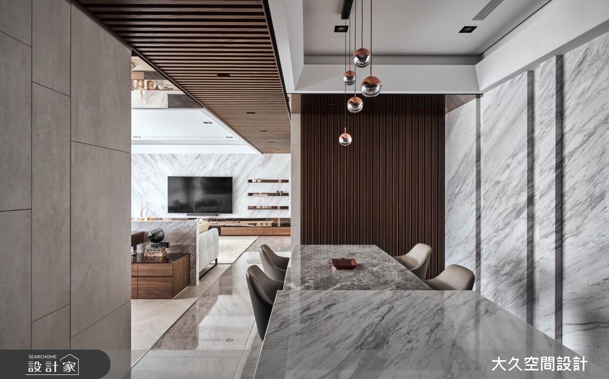 大久空間設計以乳膠漆、壁紙、海島型木地板、石英磚/拋光石英磚、不鏽鋼、鐵件、茶玻、鍍鈦金屬、木作貼皮、大理石、磁磚、皮革、石材、繃布、噴漆的搭配應用,呈現奢華風居家氛圍,將此間52.4坪、三房、單層、新成屋(5年以下)打造成舒適愜意的家庭空間,完成2位大人全家人的夢想之居。