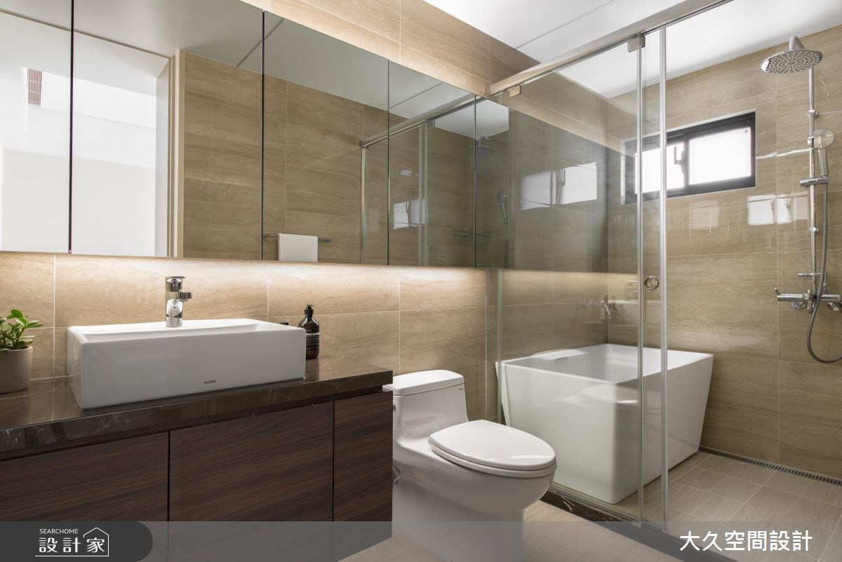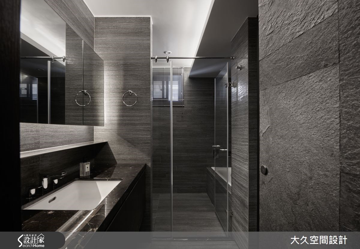 35坪居宅,設計師藉引採光、材質與色調的完美調和,雕塑出中性且溫和的氣息,讓空間具備豪宅氣勢,闡述猶如飯店般的精緻品味,快跟著小編一起來看看吧! 客廳,以灰色大理石建構電視主牆,呈現大器質韻,並於下方安置視聽櫃,強調整個立面的延展尺度,且加入灰階軟件布藝、灰色沙發背牆等,藉此呼應石材色調肌理,鋪敘沉穩的生活氣場,一座藍色單椅則恰到好處形成亮點,達到提亮視覺的作用;過渡至餐廳區,則透過鐵件修飾框景,不僅弱化橫亙的大樑壓迫,型塑領域間的界線,更構成延展視野的效果,並接納來自陽台、客廳的雙向採光,挹注明亮氛圍;同時給予公私分明的動線規劃,沿著客廳沙發牆旁的過道彎轉進入,即可來至私領域地帶,寢臥內,沒有過多不必要的裝飾,以機能齊全做為主要訴求,賦予素樸簡約的鋪陳,營造令人安心的休憩感! 小編的最愛 衛浴除了基礎的乾濕分離功能之外,也運用櫃體搞定備品收納,尤其增設的桌面平檯與座椅,更添注使用上的便利性,使浴室機能更為人性化!
