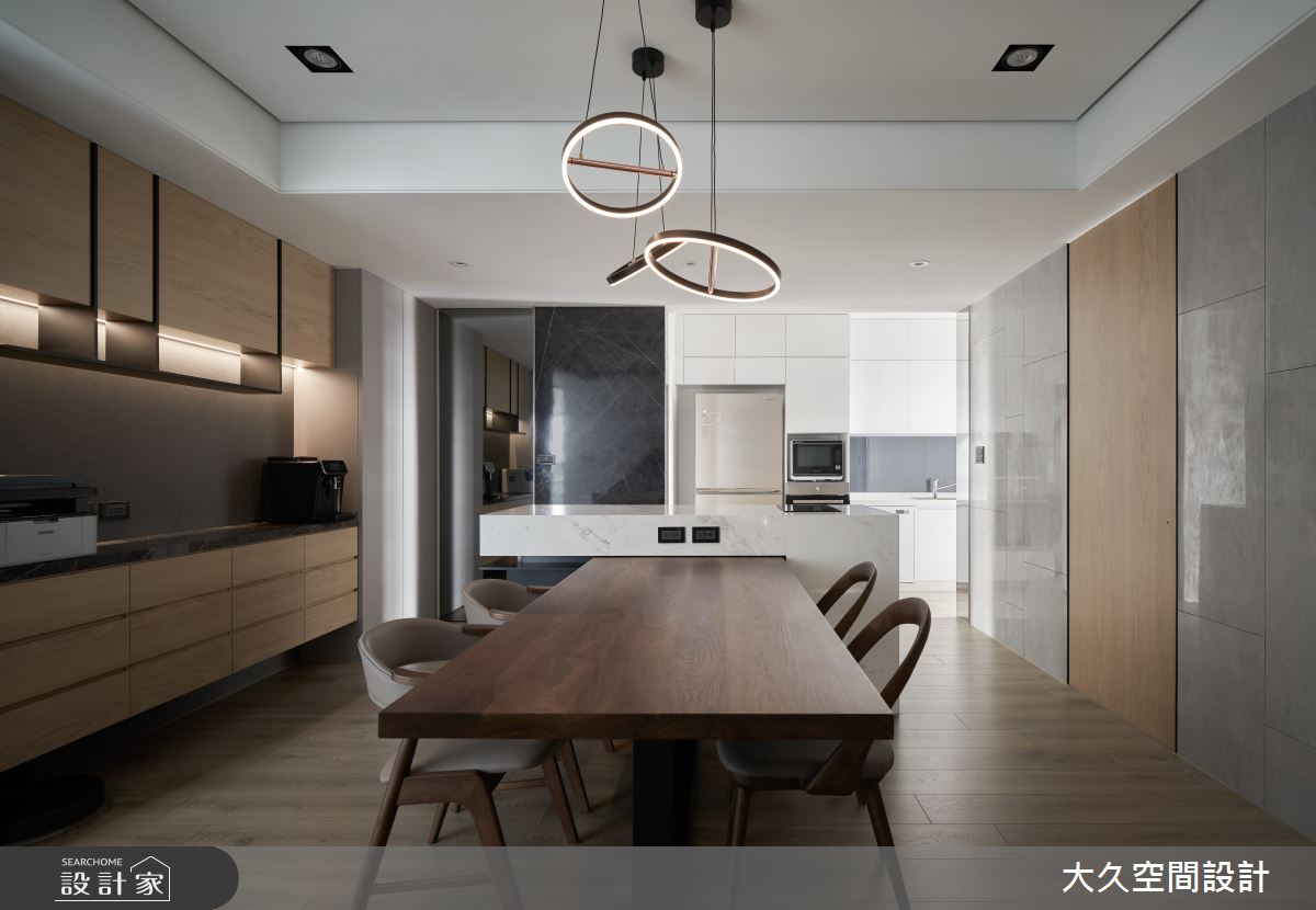 本案為大久空間設計的43坪現代風新成屋(5年以下)設計作品,格局為單層四房的居住空間。居住成員包含3位大人、1位小孩。全室建材的搭配,應用乳膠漆、壁紙、超耐磨木地板、石英磚/拋光石英磚、不鏽鋼、鐵件、灰鏡、木作貼皮、系統板材、大理石、皮革、繃布、噴漆、美耐板,展現溫馨的居家氛圍。