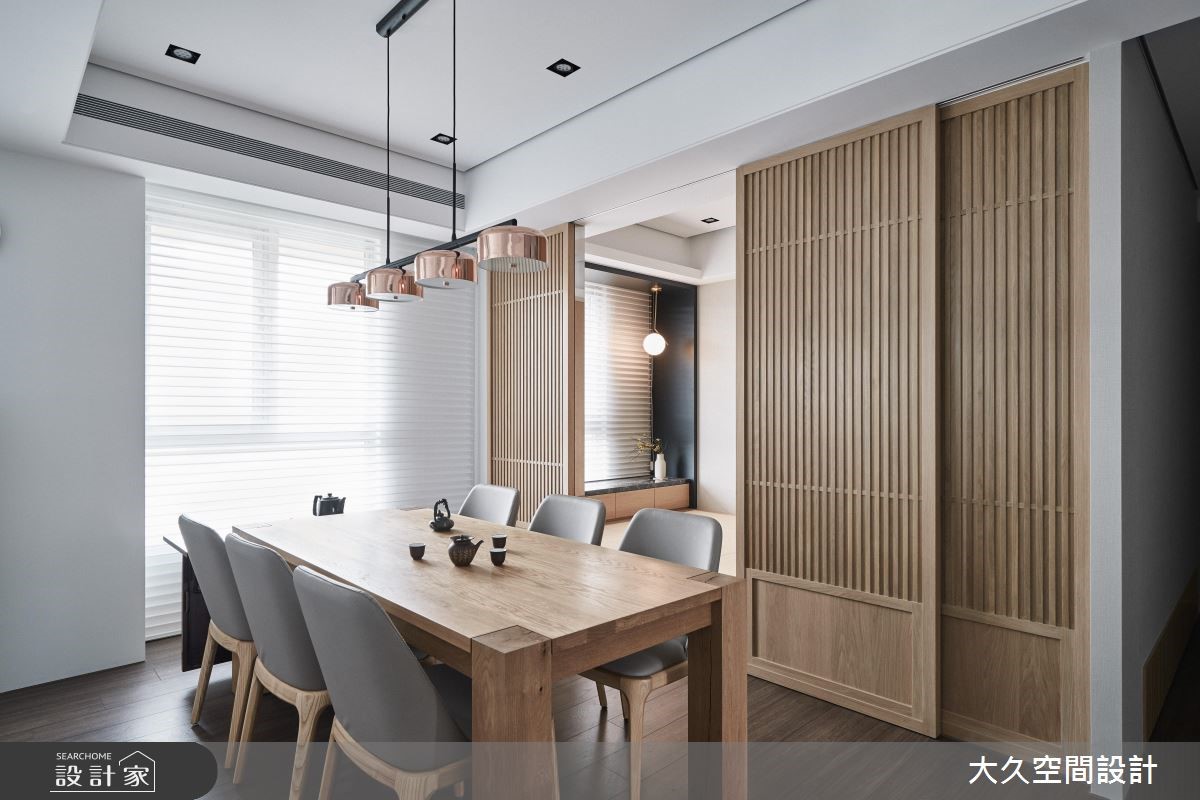 來自大久空間設計的43坪人文禪風住宅案,屋主一家人共有2位大人,是一間單層新成屋(5年以下)的兩房格局,設計師藉由建材以乳膠漆、超耐磨木地板、鐵件、茶玻、木作貼皮、烤漆、系統板材、大理石、磁磚、人造石、皮革、繃布、噴漆的搭配應用,實現一家人的理想生活。