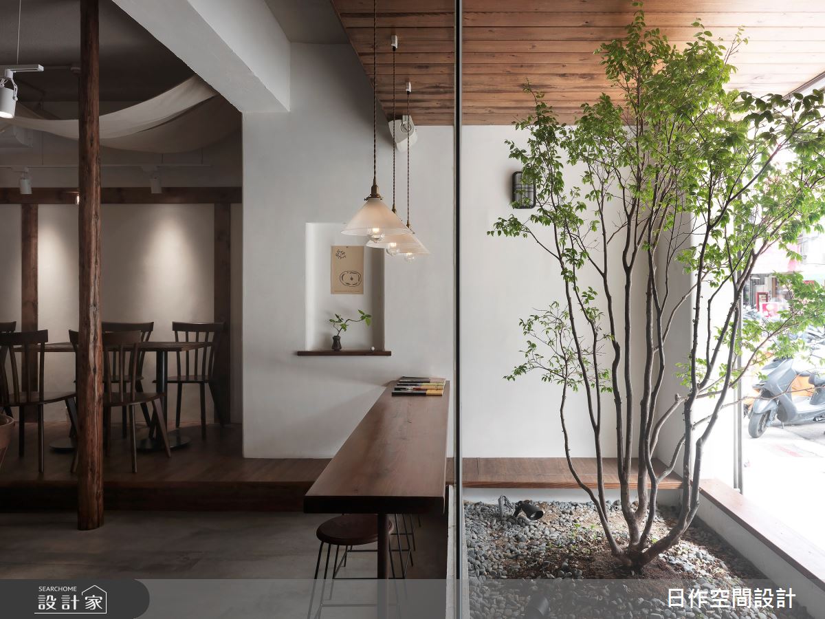 日作空間設計以不鏽鋼、柳杉、南方松、灰泥塗料、紅磚、文化瓦、發泡玻璃、防水透氣布、RC的搭配應用,呈現北歐風的風格氣息,將此間5坪新成屋(5年以下)優雅詮釋成舒適愜意的商業空間。
