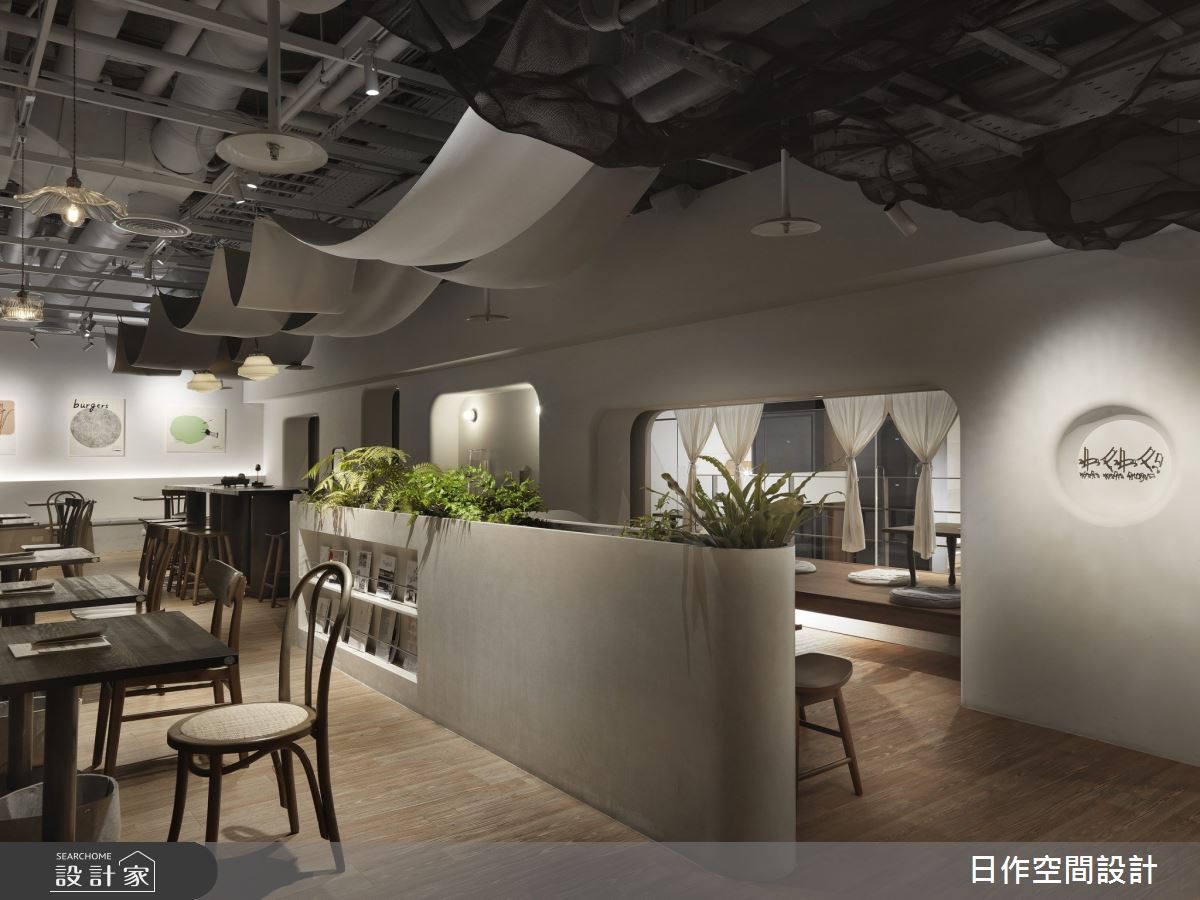 日作空間設計以系統板材、磁磚、塗料、石塑地板、木紋美耐板、實木、FENIX的搭配應用,呈現混搭風的風格氣息,將此間33坪老屋(16~30年)優雅詮釋成舒適愜意的商業空間。