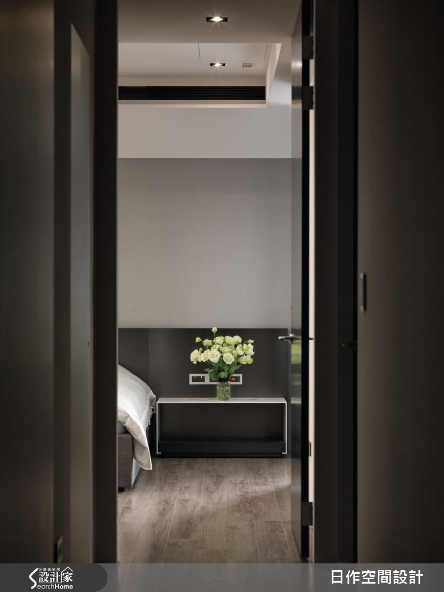 有別以往以溫潤木作設計見長的設計團隊,於本案別出新意;依照屋主針對風格的喜好,利用黑、白色調為底蘊,讓整個居家空間披覆極簡俐落的氣息。設計師更針對格局進行調度,適度增減空間量度並創造意想不到的收納機能! 於客變時即與屋主合作的設計師,洞見原先格局的弱勢,外移書房牆面解決女兒房狹窄問題、更在餐廚空間增設吧台與電器櫃,有效擴增廚房空間。待正式交屋後,設計師將重點擺在「色調配置」與「機能規劃」方面,為一家人創造收納隱於無形的開闊空間。玄關區域為一大亮點,利用數個純白懸櫃結合鍍鈦版,為傘架與鞋櫃打造簡潔收納端景,牆面的卡拉拉白大理石牆面延伸至客廳電視牆,成為黑白色調間的鏈結。玄關櫃體擁有收納與鋼琴櫃體的雙面應用,更成為場域間的無形切割;接著利用電視牆收納櫃與後方書房染黑木皮櫃體的色調與線條,精準創造黑白比例的分配。利用吧台隔間為餐廚空間爭取 1.5 倍的場域拓增,更分為輕、熟食區,讓公領域空間更形寬敞。 小編的最愛 主臥天花巧妙利用斜板設計,抹除壓樑問題;更以過道結合書房空間,灰玻作為場域屏隔,顯得通透不失俐落質感。