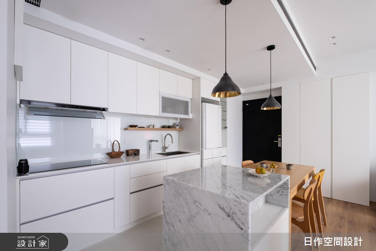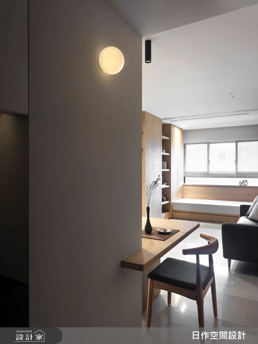 來自日作空間設計的20坪日式無印風住宅案,屋主一家人共有1位大人,是一間單層預售屋的一房格局,設計師藉由建材以超耐磨木地板、磁磚、人造石、系統櫃的搭配應用,實現一家人的理想生活。
