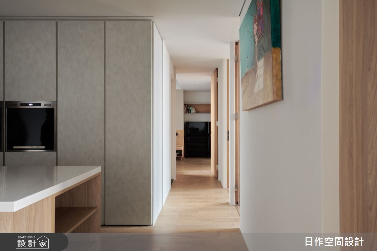 由日作空間設計精心規劃的40坪三房住宅空間,家庭成員一共有2位大人、2位小孩。因應屋主需求,設計師運用現代風作為主軸,搭配無接縫塗料、超耐磨地板、優白烤漆玻璃,打造全家人的夢想家居。