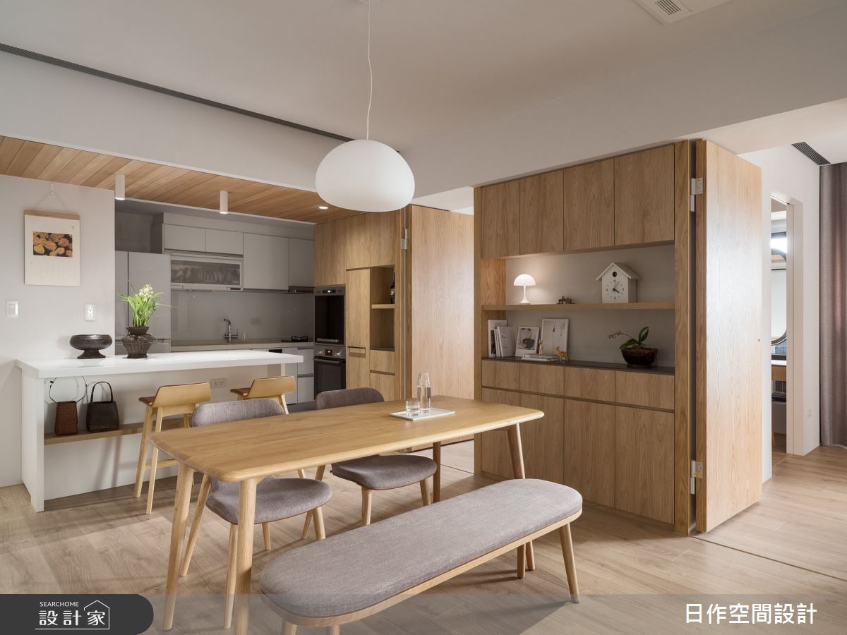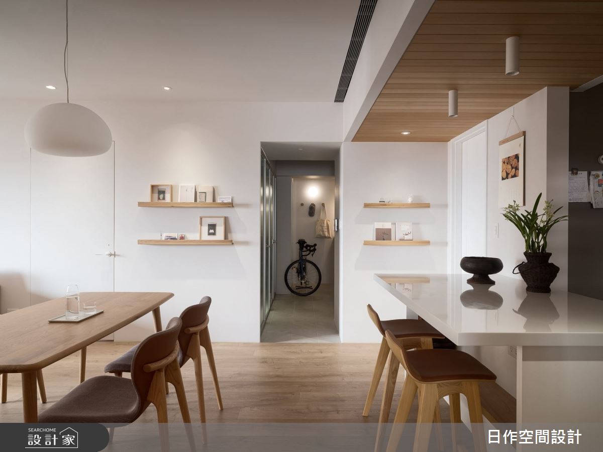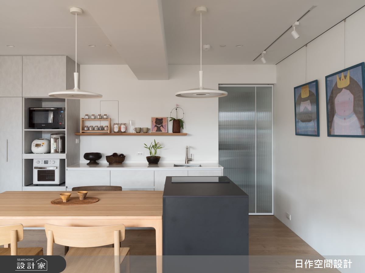 來自日作空間設計的30坪日式北歐風住宅案,屋主一家人共有2位大人,是一間單層新成屋(5年以下)的三房格局,設計師藉由建材以人造石、白橡木實木條、稻草梗塗料的搭配應用,實現一家人的理想生活。