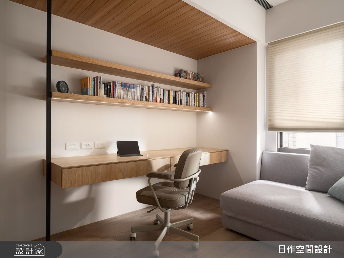 本案為日作空間設計的21.3坪日式無印風老屋(16~30年)設計作品,格局為單層三房的居住空間。居住成員包含1位大人。全室建材的搭配,應用超耐磨地板、無接縫塗料、實木木皮、系統櫃、特殊漆塗料、鐵件,展現溫馨的居家氛圍。