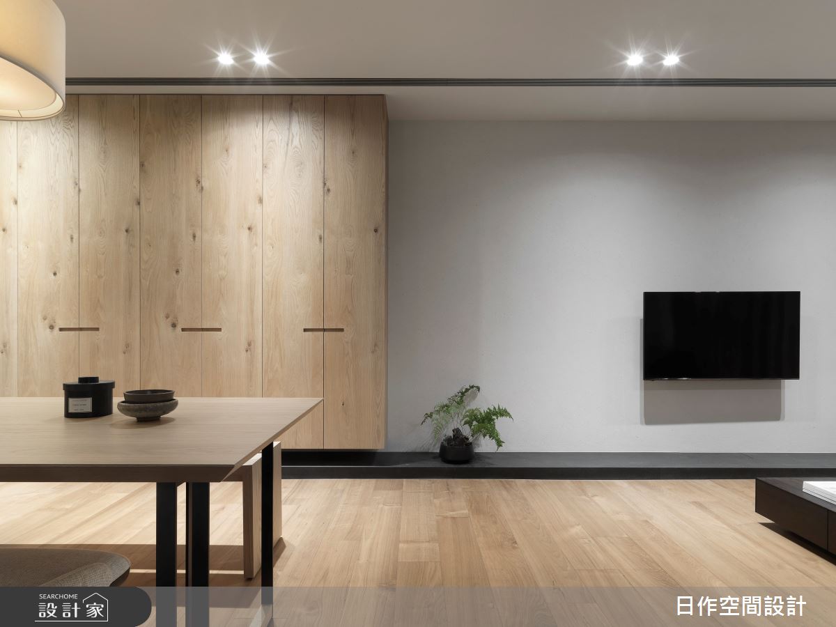 來自日作空間設計的32坪日式無印風住宅案,屋主一家人共有2位大人、1位小孩,是一間單層新成屋(5年以下)的兩房格局,設計師藉由建材以木作貼皮、特殊漆、白板牆的搭配應用,實現一家人的理想生活。