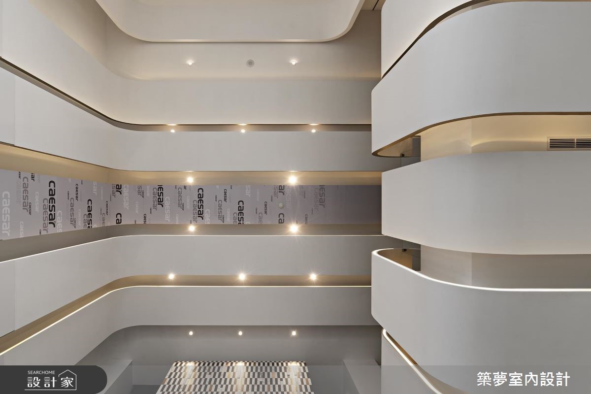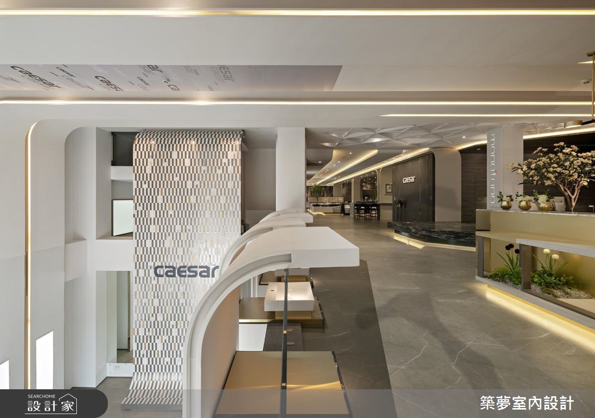 平價奢華衛浴品牌「凱撒衛浴」,其 250 坪商業展示空間,除了將採光問題改善之外,也透過現代元素混和新古典語彙做修飾,塑造高挑大器的優雅視野,快跟著小編一起來看看吧! 空間中,以圓弧形木作搭配菱格紋新古典天花板環繞全場,藉由流線造型帶出大器磅礡的設計感,貼近優雅的產品形象,並在流線蔓延之中,讓品牌英文字樣猶如垂降布幕般從天而降,迎接貴客的到來;天花板、地面等處則加入間接光源照映,以線性燈光遊走一室,醞釀精緻的光感氣氛;二樓空間,刻意做出局部的架高檯面,成為設配、商品的絕佳展示舞台,並擘劃流暢開放的參觀動線;尤其在各處妝點綠植淨化空氣,使環境更顯清新,豐饒的花葉壁紙也與大自然形成呼應,表現嶄新的氛圍! 小編的最愛 「一日之計在於晨」,每個人起床第一件便是到衛浴裡洗漱,在此乾淨明亮、低調奢華的商空意象之中,引領顧客開啟美好的生活想像!