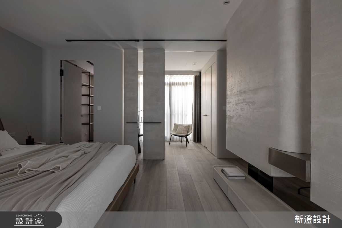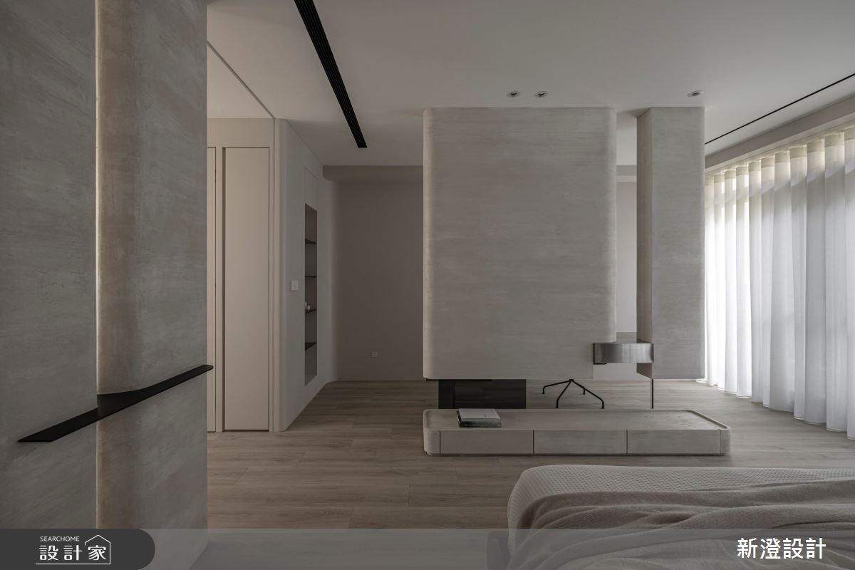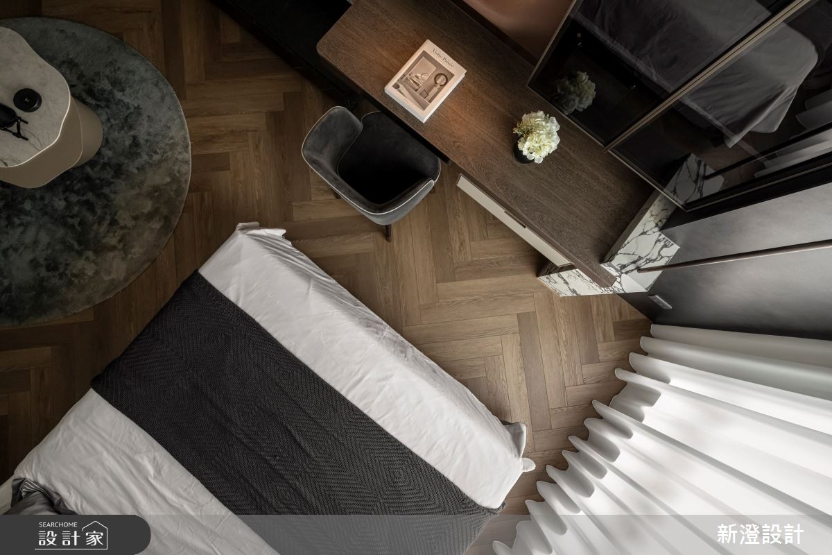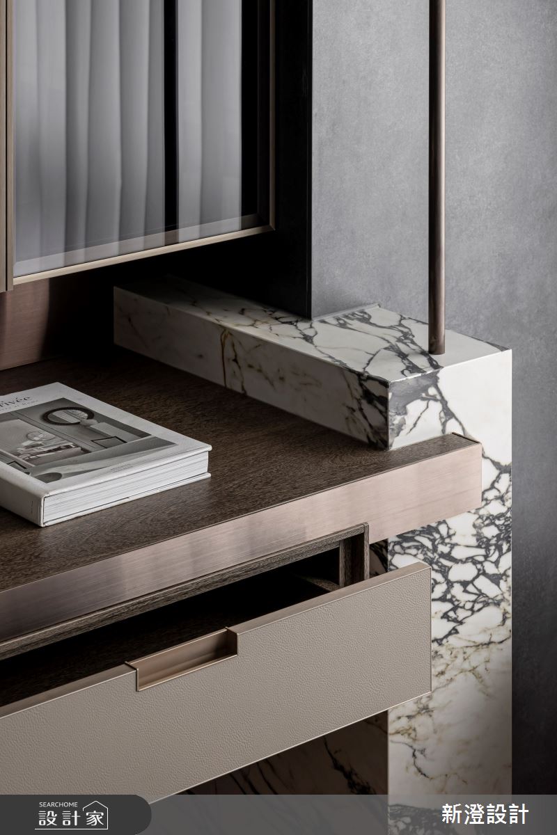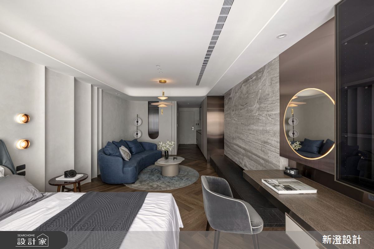 新澄設計以石材、陶瓷板、藝術塗料、鈦金的搭配應用,呈現國際酒店風居家氛圍,將此間12坪、一房、套房、老屋(16~30年)打造成舒適愜意的家庭空間,完成一個人的夢想之居。