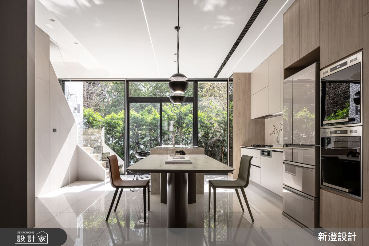 來自新澄設計的75坪現代風住宅案,屋主一家人共有2位大人,是一間透天別墅新成屋(5年以下)的四房格局,設計師藉由建材以石材、陶瓷板、鐵件、玻璃、超耐磨地板的搭配應用,實現一家人的理想生活。