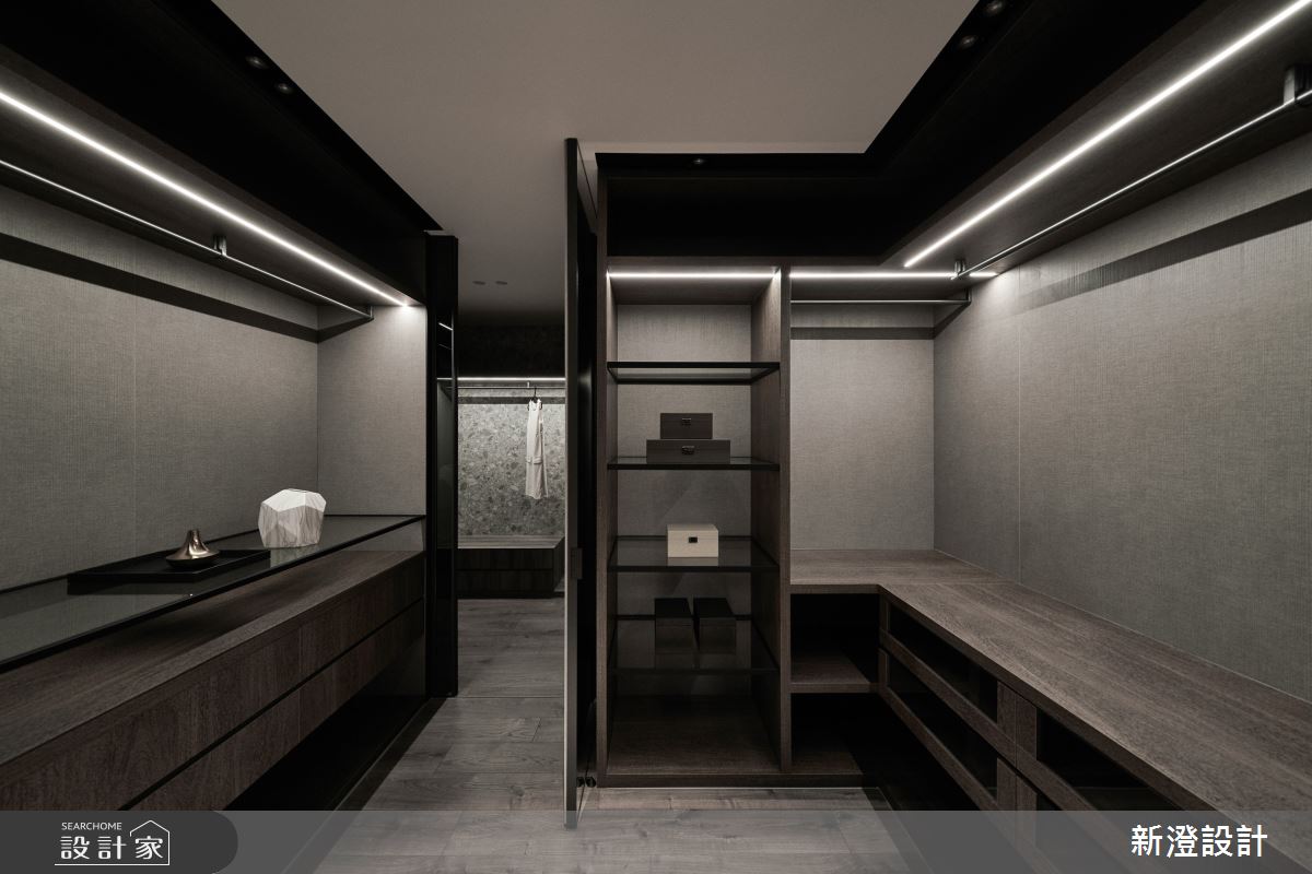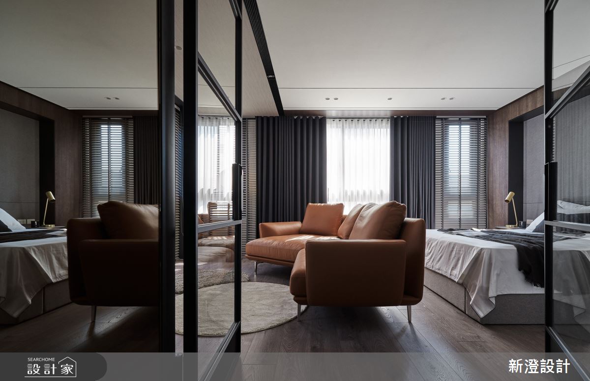 屋主一家人從屋案 72 坪毛胚屋時期就與新澄設計合作,期許設計師能將的採光優良、通風佳的基地優勢,發展大器卻不顯過度奢華的現代風宅邸。 設計師巧妙以精選家具,劃分全開放空間中的場域,除了創造回自動線,同時也保留了公領域之中複合式機能、串連書房與客廳並大幅提高互動性。針對大宅質感營造,設計師注入新古典元素,應用人字拼法順應軸線鋪設實木地板,並在天花採用細密的線板框出雅緻層次,佐以造型特殊的懸吊水晶燈飾拉伸天花高度感受。電視牆則應用對襯概念,結合大理石與木皮線板,打造沉穩低奢的感受。針對收納機能,為了不影響開闊動線,皆沿四面牆收攏,創造大面積收納量度。餐廚空間利用吧台串連廚房與餐桌,更延續客廳風格,以石材與木皮打造大器氛圍。 小編的最愛 大地色系為基調的主臥,比照歐美規格,結合起居、閱讀功能,成熟的木皮床頭牆佐石紋踢腳板,完成了屋主對現代風大宅專屬質感的期待。