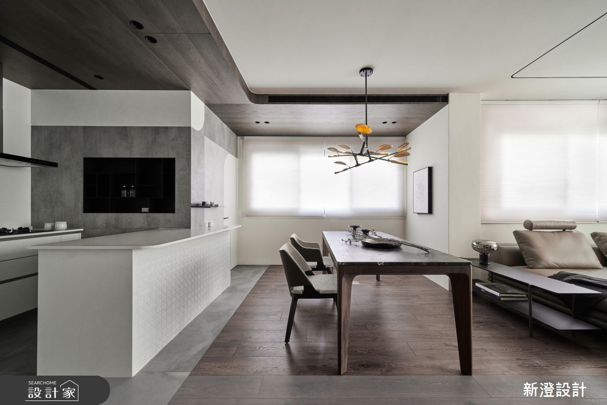來自新澄設計的38坪現代風住宅案,屋主一家人共有1位大人,是一間單層新成屋(5年以下)的兩房格局,設計師藉由建材以石材、鐵件、藝術塗料、實木地板、進口磁磚的搭配應用,實現一家人的理想生活。