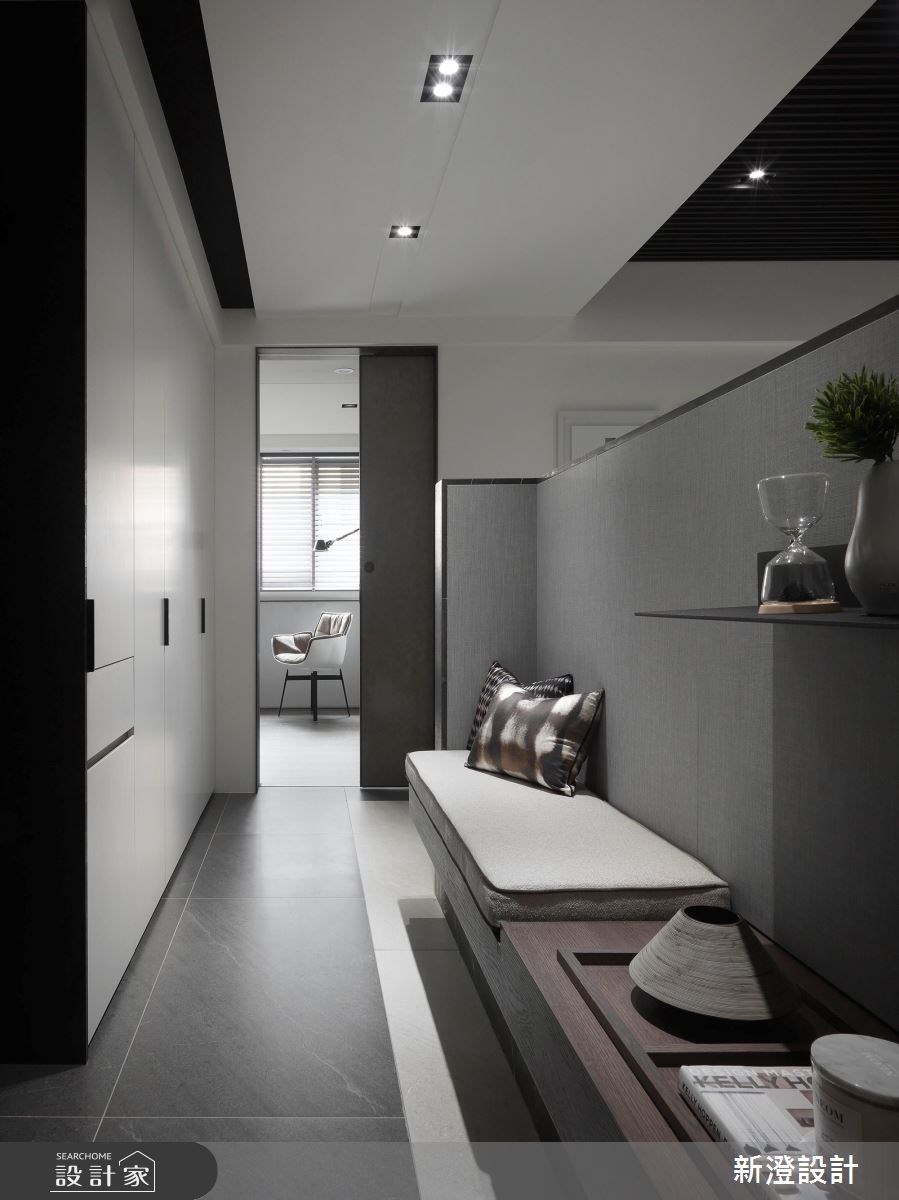 位於都市的 32 坪老屋就像其他年久失修的屋案一樣,充斥著漏水壁癌、採光不足、畸零歪斜等問題,且看新澄設計要如何為一家 4 口打造簡單俐落又不失溫馨的全新居家環境! 從入門就能看到設計團隊的絕妙巧思,利用結合穿鞋椅的雙面電視牆,抹除了特定玄關的刻板印象,左側整排落地櫃更提供了充裕的收納空間。在完成防水工程的基礎安全建設後,設計師採用經典的黑白灰色調,配合相應的建材與軟件,創造俐落、簡約且質感滿分的視覺感受。電視主牆與沙發背牆的大理石色調相互呼應,天花板細密的黑色格柵造型成為兩者的串連,更善用燈光設計與色彩搭配一舉解決公領域沒有光源的極大困擾。私領域延續公領域的設定,以低彩度與燈光設計讓臥房瀰漫紓壓、沉穩的感受。 小編的最愛 設計師應用巧妙的動線設計,達到俐落的視覺感受;色彩搭配更解決了採光問題,佐以時髦的金屬元素,達到畫龍點睛的效果。
