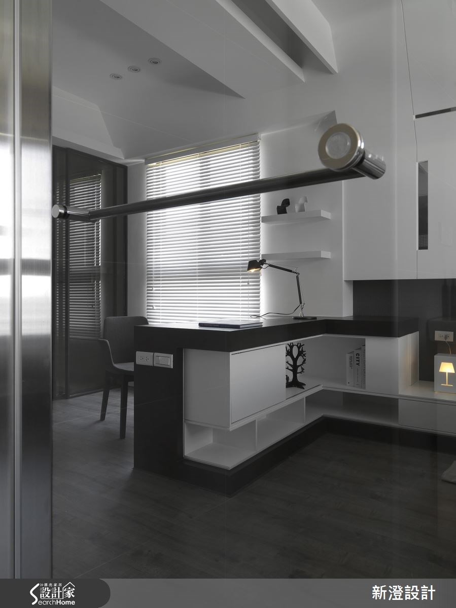 步入位於新竹市香山區的 34 坪居宅,酷黑與純白的強烈對比色,展現滿溢時尚度的現代風格,設計師加入中間色的裱材做為黑、白間的調和中介,輕盈的玻璃牆保留視覺與光線的穿透性。透過大方不造作的摺線、弧角和直角的適度安排搭配,收落成出眾有致的美學概念宅。 從門口進入後即是客廳與餐廳,另一端的廚房以鐵件及玻璃的複合材質拉門保留隱私感,宛如飛機機翼的造型天花自餐廳延伸至客廳,盡情翱翔在開放式的場域。書房側邊的折門嵌入不規則的矩形透光玻璃,讓光影在廊道與書房的流動透漏間產生不同的變化,形成別具一格的趣致互動。餐廳和書房之間也加設大型深色框格,清透玻璃保留光線和視覺的穿透感,設計師並在玻璃窗檯上鋪設柔軟舒適的坐墊,除了放大走道間的距離、節省空間外,也讓一家 4 口有了更多的生活交流。 寬敞明亮的主臥室裡納入更衣室、梳妝台、衛浴等多重機能,介於更衣室及臥室間的化妝檯將兩個不同場域區隔定義,另一面則融入實用的收納機能做為床邊矮櫃使用,半身的高度解開視野的拘束,讓整體空間看起來更加開闊舒適。衛浴利用沉穩色調及馬賽克拼排,營造時髦而舒適的沐浴氛圍,浴室前的置衣架以路標為設計概念,標註上不同國家城市,很有旅遊度假氛圍。 小編的最愛 僅以簡單的黑白色調與線條搭配,室內並沒有過於誇張的鋪排裝飾,但在設計師對於空間的細節設計中,卻能在眼前浮現一家人幸福而有質感的生活樣貌。