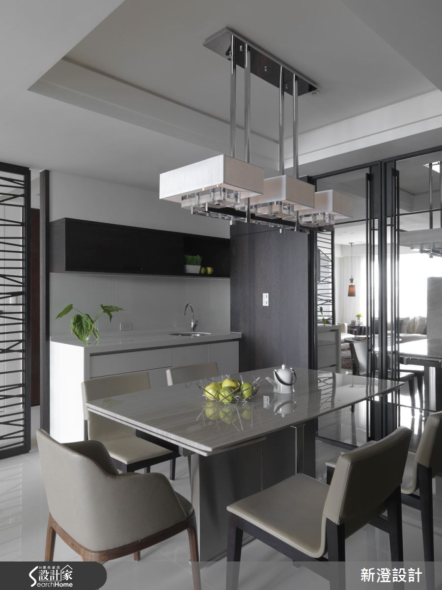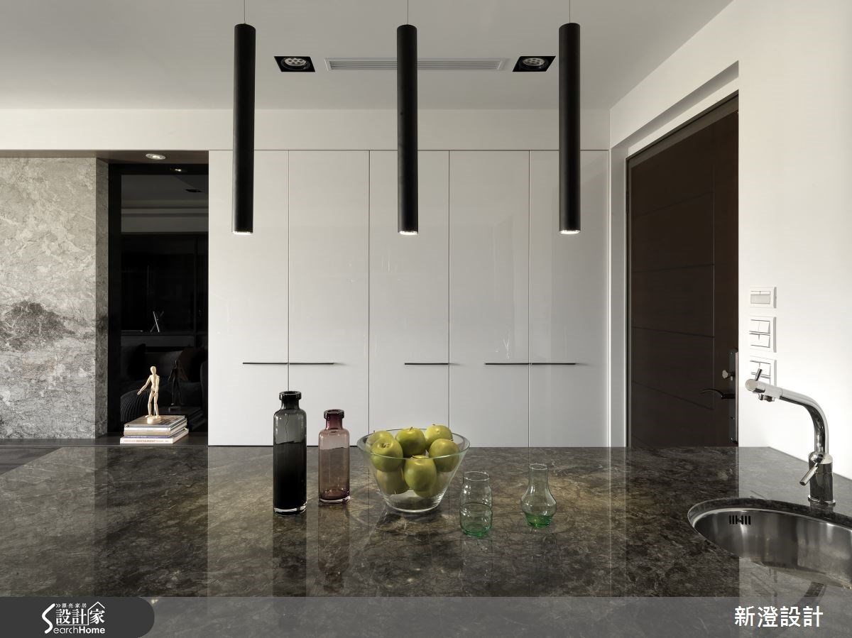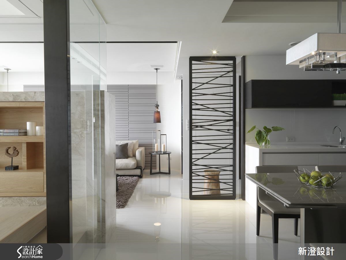 進入屋內,色澤溫樸的牆面在進門後即開啟第一眼的舒適印象,位於新竹市的 52 坪預售屋,利用現代風的簡約線條及乾淨色調,營造簡潔自在的居家生活,再搭配材質、別緻的軟件和燈具,讓空間中多了可以細細品嘗、回味的細膩深蘊。 由玄關進入後,由牆面延伸一到俐落線條交織的黑色格柵,佇立在玄關、客廳、餐廳之間,除了能夠避開入門後即見餐廳的突兀感,也在一開始即暗示動線的走向安排及界定領域。客廳納入陽台的明亮採光和綠意景緻,並作為整體空間配置的設計重點,淺灰色的沙發背牆大度而莊重,酒紅色的吊燈自兩旁對稱垂墜而下,溫亮而帶點神祕感的光芒,別有一番風情韻致。 自然石材砌成的電視牆坐落在客廳與閱讀區之間,細緻的結晶和紋理呈現出溫雅大方的質感。走到閱讀區,電視牆的另一面嵌入相當實用的收納格櫃,並將地面升抬,鋪設溫潤的淺色木材質,牆邊加設層板作為展示收納,並向窗邊延伸,簡約的設計成為閱讀時的桌面。臥室空間以沉穩舒適的色調為主,並融入大量的收納機能,設計師也因應不同居住者的需求賦予書桌、化妝檯等不同功能,讓生活更加自在愜意。 小編的最愛 設計師巧妙將蘊含大量收納機能的閱讀區融入美學設計,搭配石材和木質,以及迎著大面開窗帶進的舒適日光,營造出清雅的恬淡氛圍,攜本書奢侈地享受一個幸福的午後時光吧!