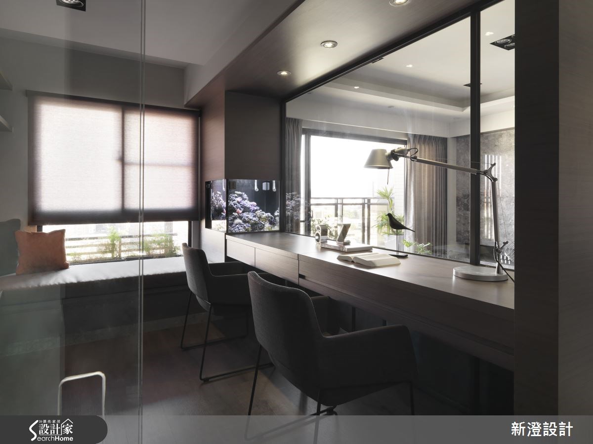 在繁忙的都市叢林之中,人人都期望可停下匆忙步伐,感受生活中的美好,在此 42 坪居家中,設計師即以現代風為底調,搭配植栽、軟件的巧思佈局,揉合穿透感與開放式規劃,舖陳出舒適療癒之感,快跟著小編一起走進來看看吧! 客廳藉由落地窗導入明亮採光,搭配植栽點綴,讓陽光灑入室內,挹注鮮活的自然朝氣,並透過單椅、坐墊等家具陳列揉入度假況味,開啟悠閒的生活態度;同時給予開放式佈局與通透隔間等設定,營造場域的通透明亮感,讓家人之間的互動對話無所不在,並將吧檯配置於合宜方位,分享廳區光線,創造清爽明媚的用餐氛圍;而在居家廊道兩端,則透過燈光與藝術品妝點,讓端景相互輝映,豐富居家景深;在臥房之中,採以大地色呼應木質地板,呈現溫樸底調,同時將色彩留給藍色床單,創造視覺焦點,床尾則規劃可移動式電視牆,內部暗藏小巧的收納空間,替立面保有簡練表情! 小編的最愛 書房內規畫整排窗邊臥榻,注入悠閒氣息,並將柱體結合魚缸設備,讓使用者在閱讀之餘,亦可隨時欣賞水族景象,感受療癒效果!