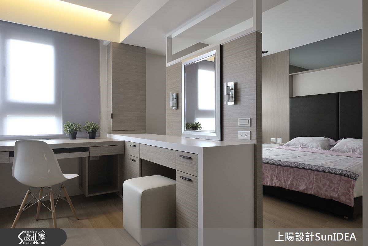 60坪大宅,屋主期盼空間不僅作為居住之用,更能達成餐聚聯誼的使用目的,於是於建案興建之初,就讓設計師與風水老師同步規劃,不僅擘劃出端莊的格局場景,更精選合適建材與軟件,給予現代風格挹注,成就大器不乏細緻的豪宅視野;快跟著小編一起來看看吧! 玄關處,設計師做出展示端景平檯,搭配著燈光、藝品的烘托,打造具人文質感的開門意象;來到客廳,則可見磅礡大理石構築的電視主牆,搭配著石材地坪的全室鋪展,展現沉穩的豪宅氣勢,並藉由大面積落地窗配置,攬入日夜不同的唯美景觀,使公領域視野更為增色;客、餐廳間則呈開放佈局,以高度互動情境符合迎賓待客需求,並擺設圓型餐桌、對應著圓弧天花造型,不僅呼應圓滿的吉祥意味,更與方正廳區做出隱約的界定;臥房內呈現飯店總統套房般的格局,加入電視、沙發座椅、更衣等起居功能,加以深色木紋妝點,帶入奢華與機能並進的舒適氛圍! 小編的最愛 次臥空間,利用白色鋪敘清爽特質,搭佐金色花紋壁紙,柔軟床頭表情,與優雅的線板雕塑,打造出女性喜愛的浪漫格調!