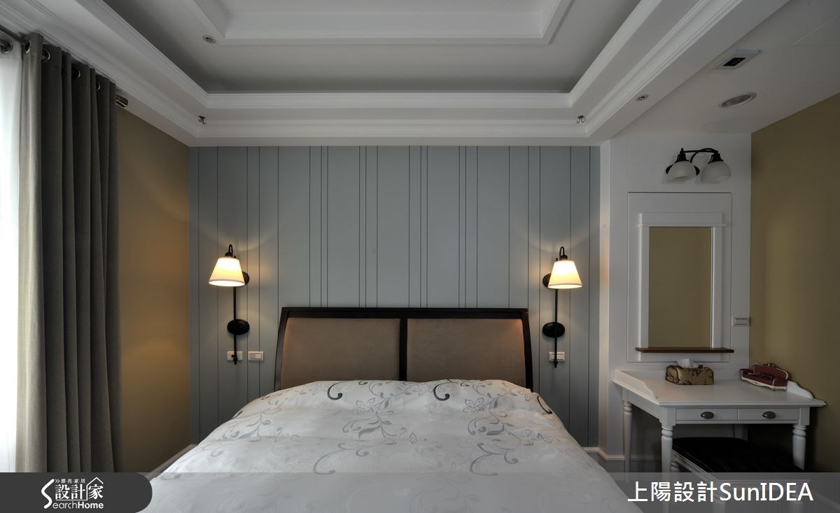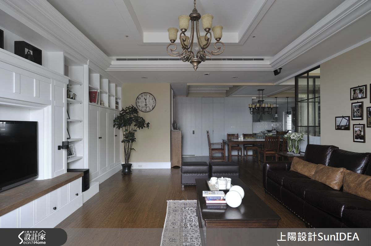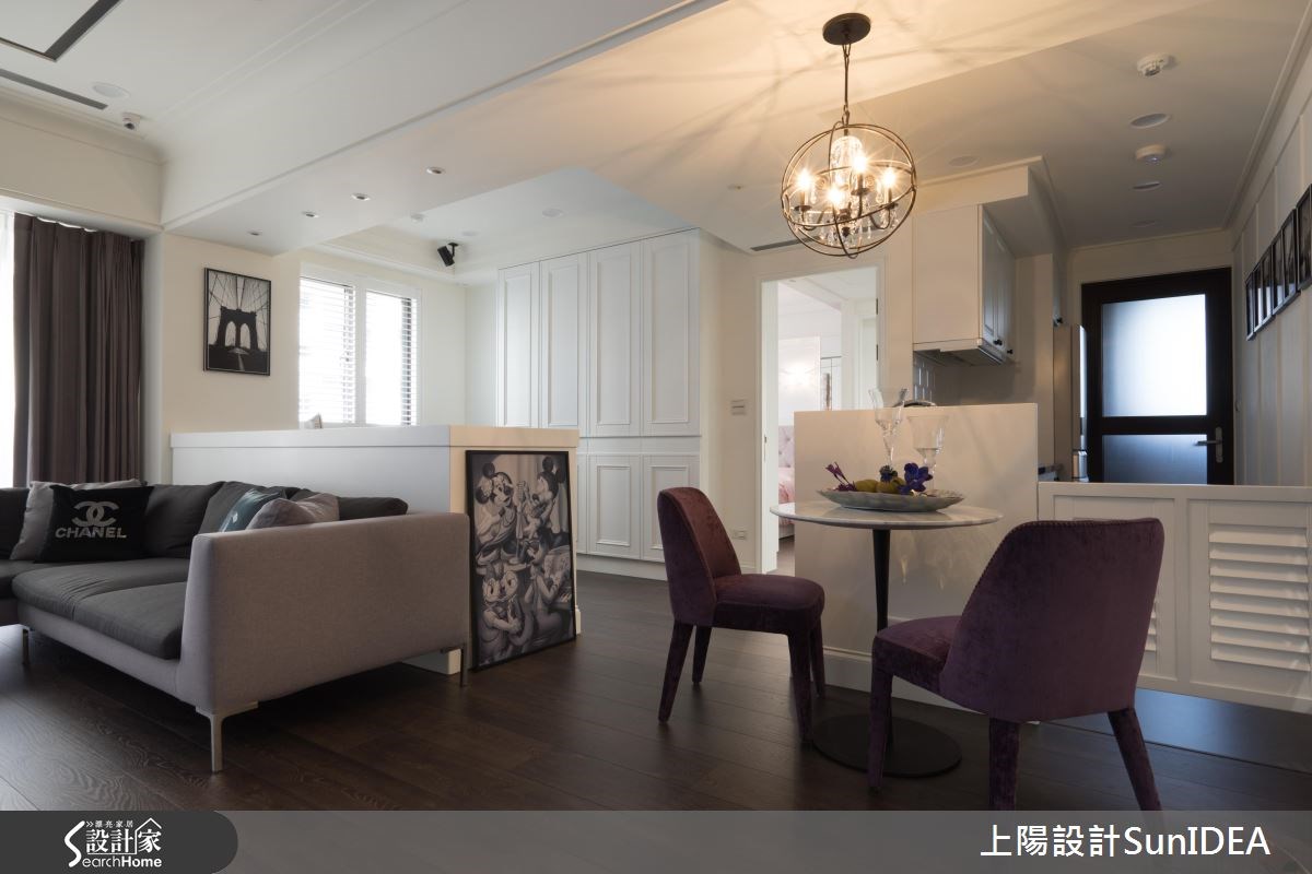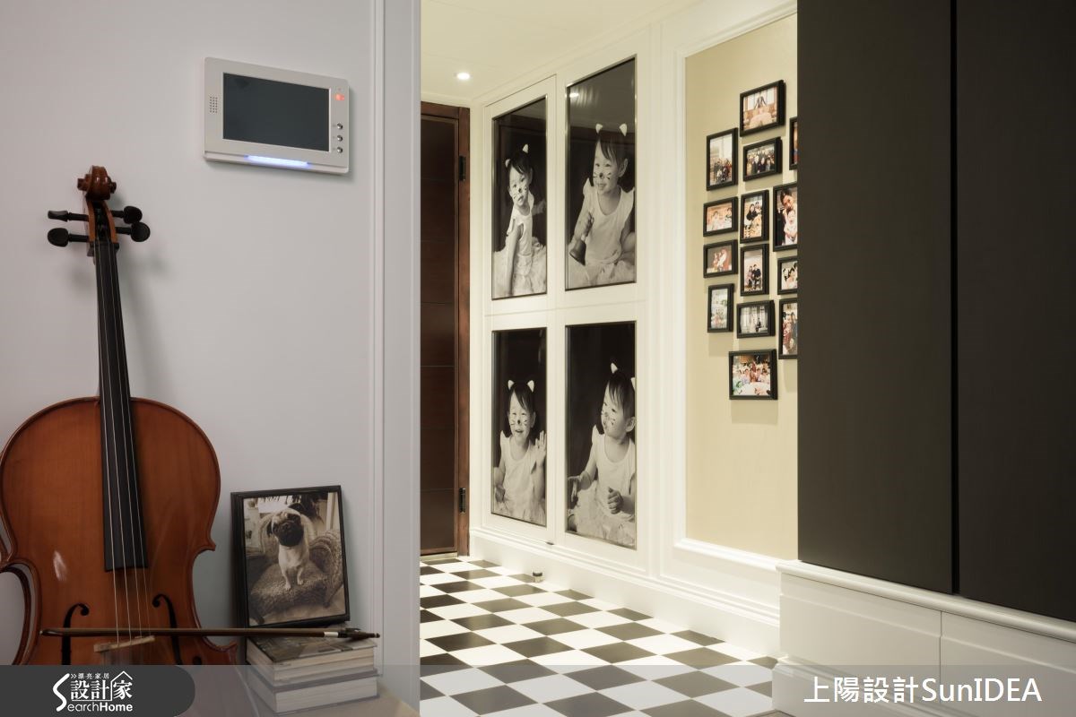 屋主從預售屋階段開始就與上陽設計合作,設計師利用軟件佈置與橡木地板色澤,為公領域營造成熟穩重的美式風格,與純白線板及格櫃形成亮暗間的鮮明對比。 為了進一步提純美式氣息,電視牆設計為架高壁爐樣式,同時增加下方空間收納巧思。沙發背牆利用櫃體、輕隔間與格狀玻璃等三種富有層次的元素,成為客廳與後方書房的空間劃分,通透不顯沉重,同時漆上鵝黃色調化身照片牆,成為眾所矚目的焦點。用餐空間地處各空間往來樞紐,包含典雅的外玄關、沉穩的客廳、廊道及透亮的書房,天花上方對襯設置純白木樑,餐櫃壁面鋪設花磚,與漆上嫩芽綠的一字型開放式廚房,為整體空間注入淡雅優美的古典鄉村氣息;主臥以純白文化磚作為壁飾,佐以灰藍壁板及芥末黃跳色牆面,增添豐富的視覺溫潤感。 小編的最愛 為了讓位於房屋中段的餐廚空間接收來自半開放書房的明亮陽光,特意以格狀玻璃引光入室,佐以油漆與花磚的色彩搭配,成功消弭沉悶感。