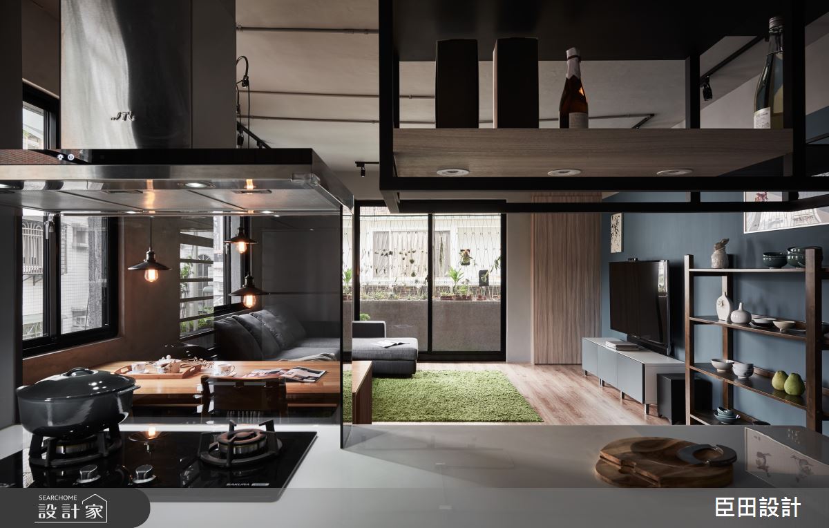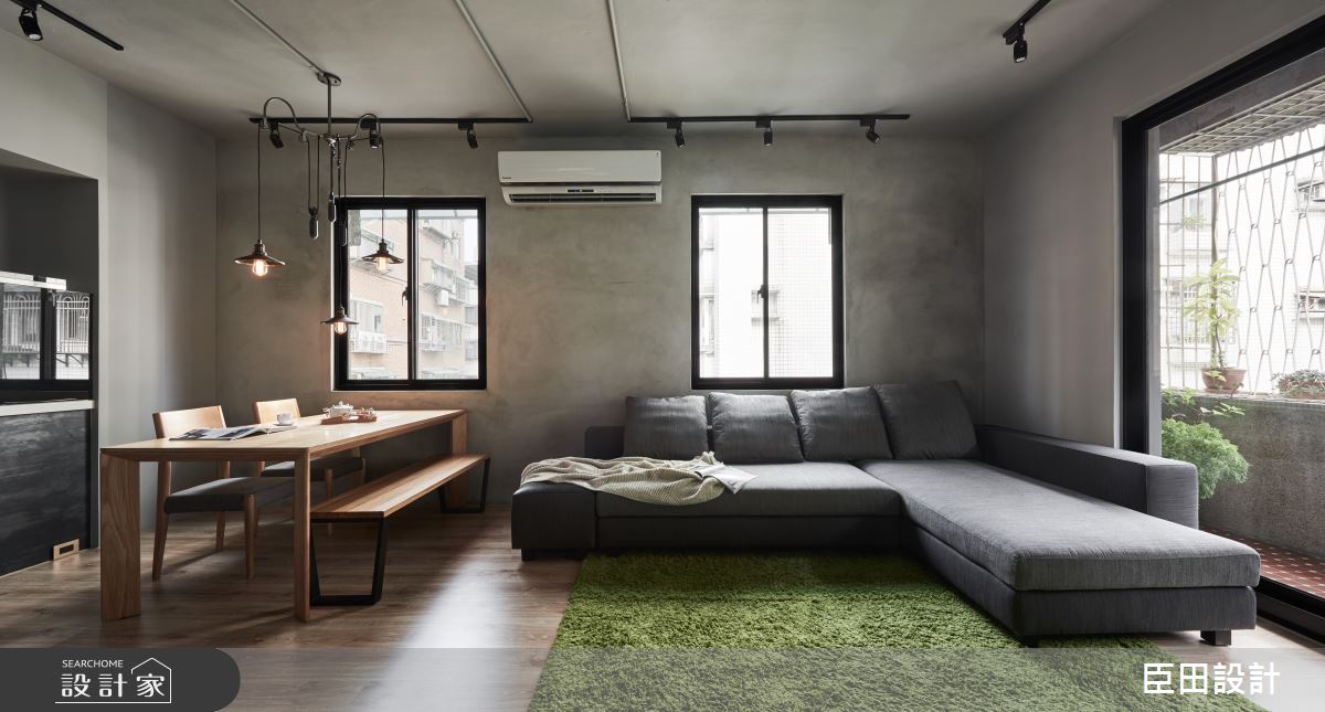 來自臣田設計的18坪工業風住宅案,屋主一家人共有2位大人,是一間單層老屋(41~50年)的三房格局,設計師藉由建材以油漆、超耐磨木地板、鐵件、灰鏡、木作貼皮、系統板材、水泥/水泥粉光的搭配應用,實現一家人的理想生活。