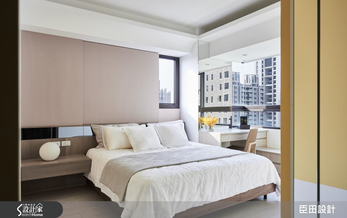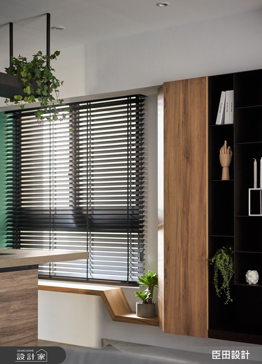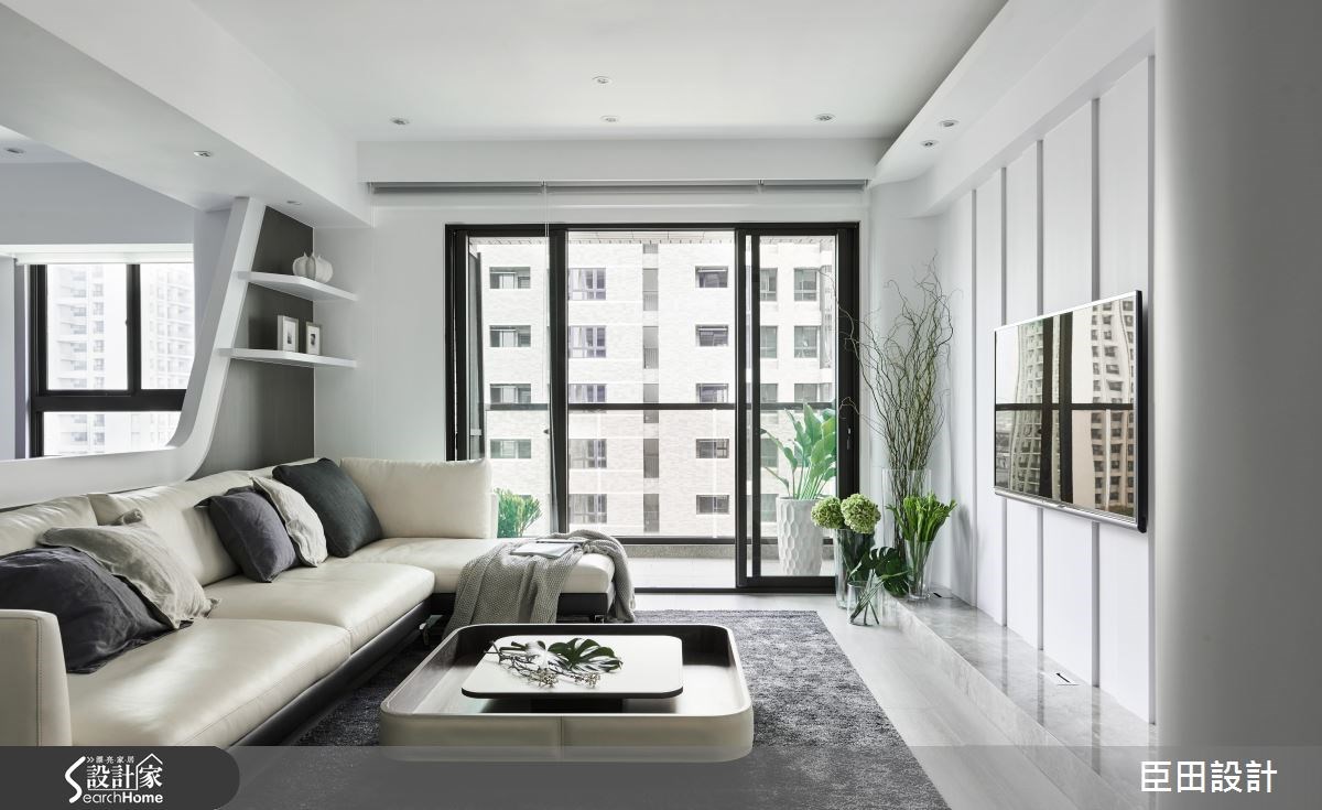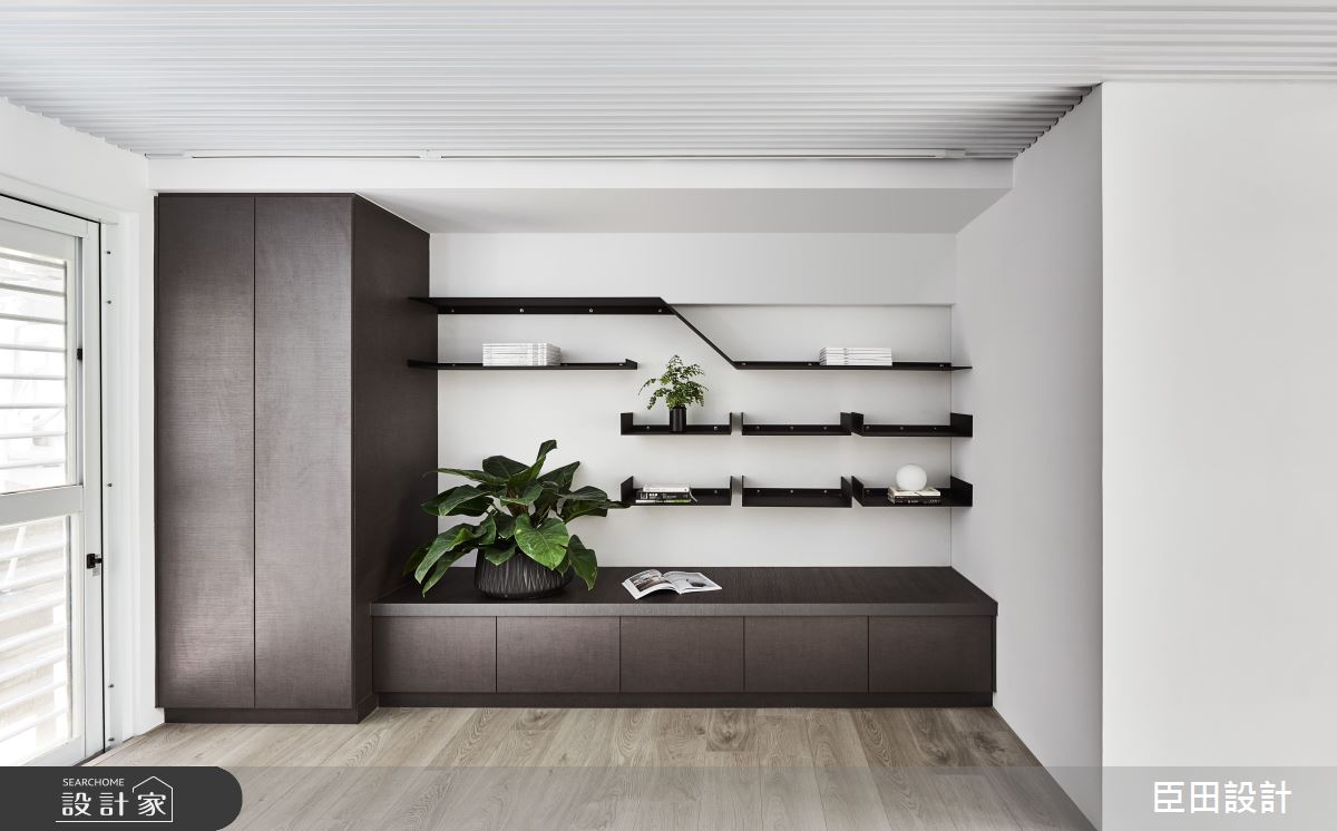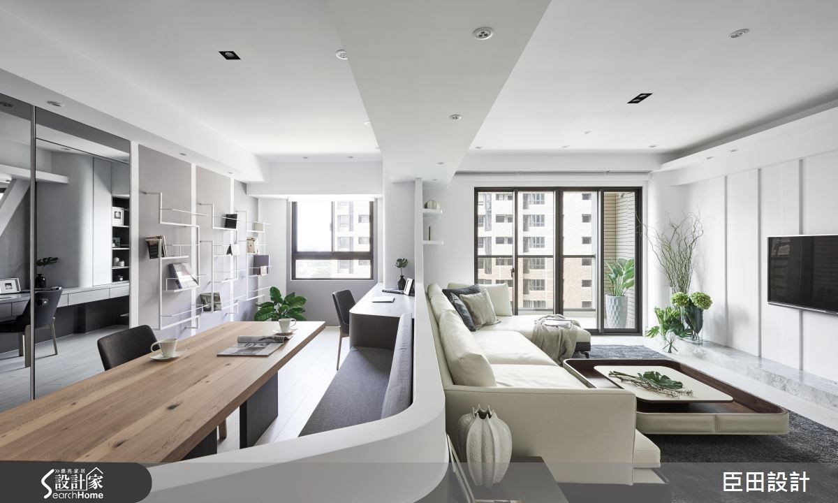 「空間之間,該如何無形進行對話、與使用者互動?」18 坪的現代風居宅,設計師以「純粹獨白」為名,並移除隔間,捨棄僵硬與制式的場域,取而代之的恰如其分的柔軟線條,在大面積的白底之中,體現帶有流動的靜謐感,充滿安靜的對話,快跟著小編一起走進來看看吧! 空間呈現大量留白,允許居住者於其中自由生活,並採取大面積自然採光,搭襯暖白、珍珠白、灰白等多元層次,擺放植栽給予綠意點綴,烘托整體的和諧溫潤感,同時以天花橫樑隱性界定場域,將書房、廳區整併為一,藉由框架維繫局部屏蔽視感,創造饒富趣味的景深與端景,而無所不在的導角、則演繹著完美的弧度,串接起各個空間轉場,將結構柱或量體等包覆修飾,敘說著柔和不冰冷的現代風調性;寢臥內同樣承襲白系的揮灑,以一道淺黃色勾勒立面、呼應抱枕及花飾,點亮場域溫度,而窗畔則規劃臥榻座席,伴隨著開闊明亮的窗景,賦予居主一處沉澱放空之處! 小編的最愛 設計除了美感,也應兼顧生活便利性。書房後的書架不僅提供置物,更可將沒看完的書直接吊掛,既不浪費桌面空間,也減少書籤的使用,一舉數得!