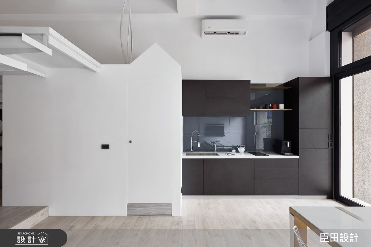 由臣田設計精心規劃的16坪兩房住宅空間,家庭成員一共有2位大人。因應屋主需求,設計師運用北歐風作為主軸,搭配油漆、超耐磨木地板、鐵件、灰鏡、烤漆、系統板材、大理石,打造全家人的夢想家居。
