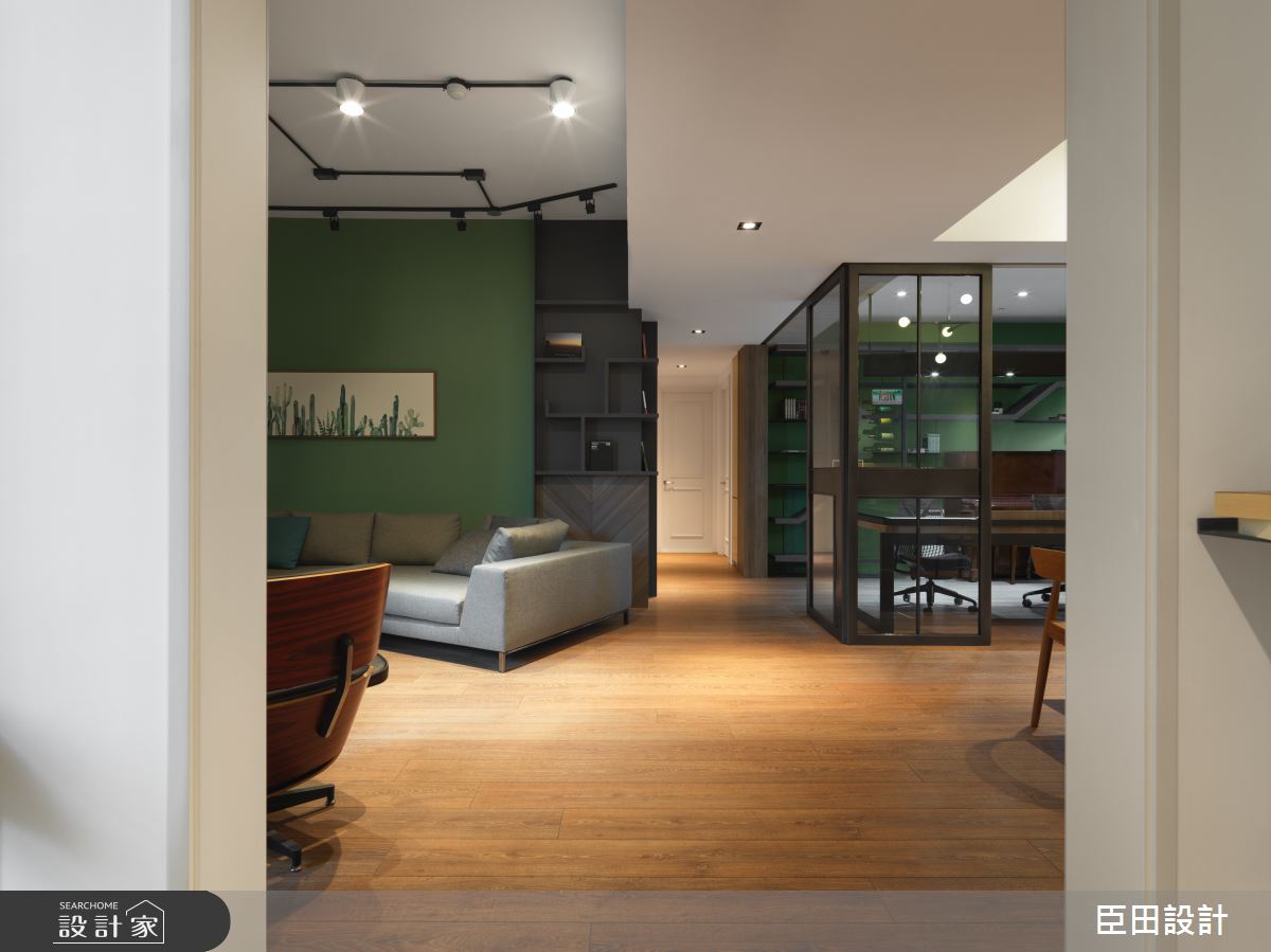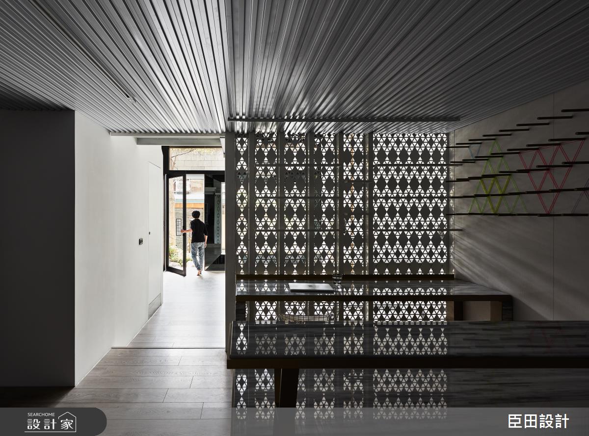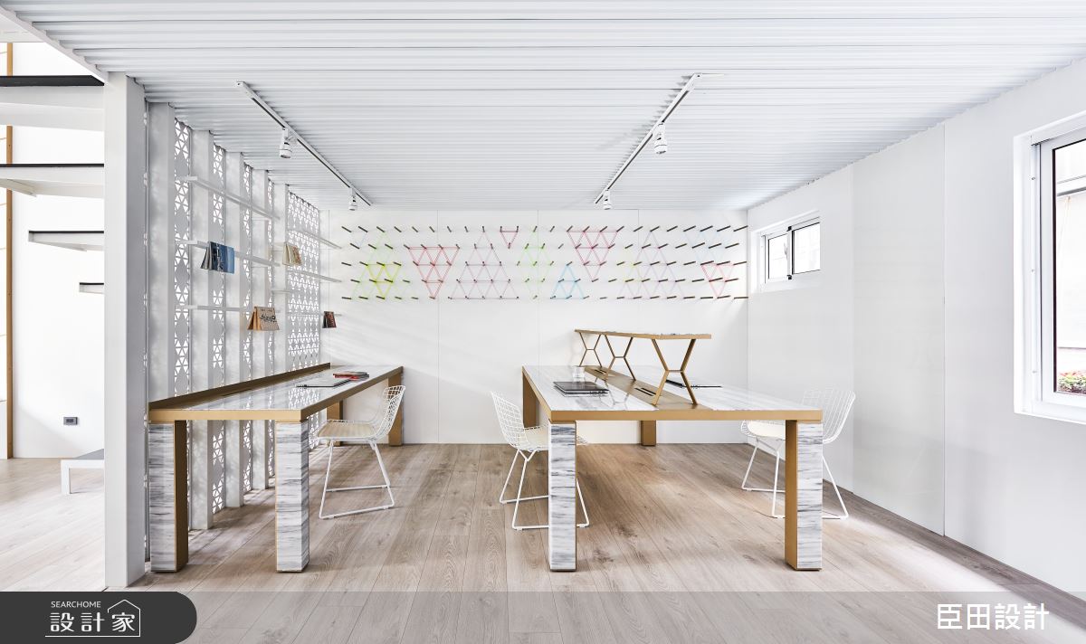 臣田設計以油漆、超耐磨木地板、鐵件、灰鏡、烤漆、系統板材、磁磚、石材的搭配應用,呈現現代風的風格氣息,將此間20坪老屋(16~30年)優雅詮釋成舒適愜意的商業空間。