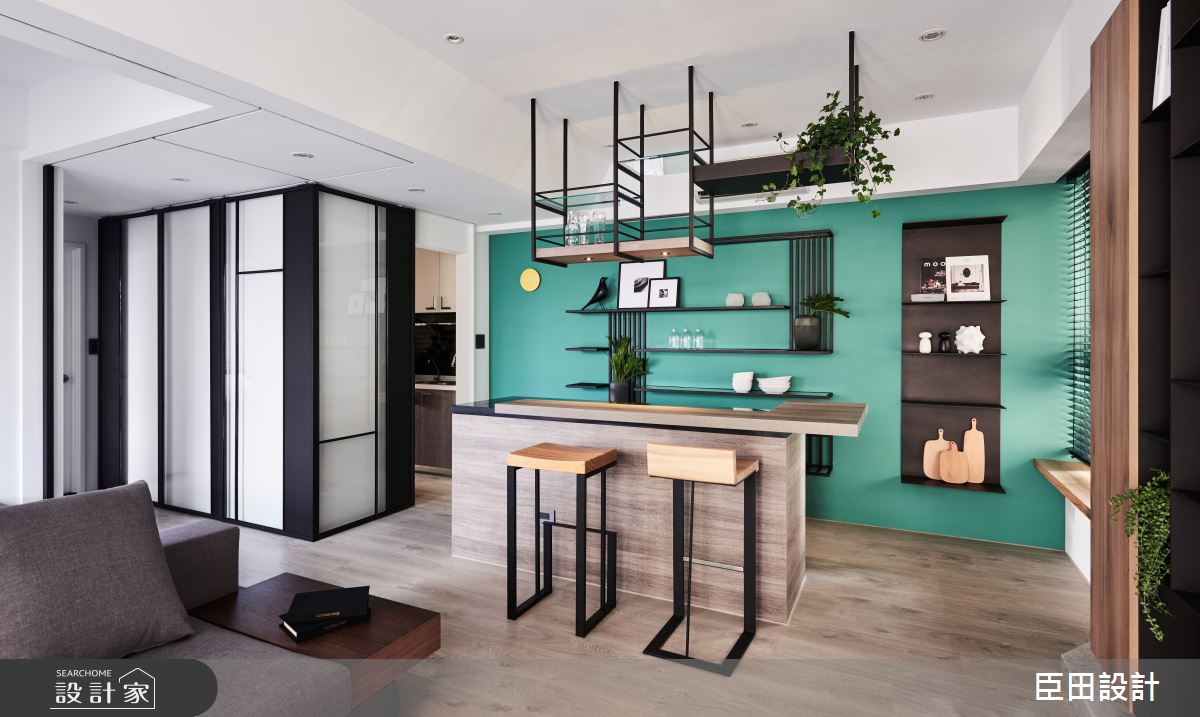 如何將時尚的風格特色,與三代同堂的需求相互結合呢?以時下備受喜愛的工業風為設計主軸,結合北歐繽紛多彩與親子友善的元素,打造令一家 5 口愛不釋手的居家空間。 公領域以全開放設計牽繫全家人的互動時光,入門處以鏡面搭配大面積紅磚牆,復古時髦兼具的氛圍立現,黑板牆則延續了開放式設計的互動功能;更額外增添投影設備,打造家庭劇院最高享受。通往私領域的樓梯與空間由展示置物櫃兩側的穀倉拉門作為屏隔,除了風格營造到位,更達視覺收整目的。順應大面積落地窗優勢,設置含收納機能的窗邊臥榻,並依照功能需求將開放書房置中、餐廚空間置後,以縱向軌道照明與降板串聯,成功創造居家空間的層次感。空間內更巧妙融合繽紛軟件、單椅與水泥粉光、木質及鐵件元素,餐廳牆面更以綠漆搭配白色線條描繪變形金剛的輪廓,創造童趣鮮明意象。來到臥房空間,主臥以大面積水泥粉光作為床頭牆,搭配星宿嵌燈,成為極富個性與亮點的端景,更巧妙結合水泥、鐵件與木作,創造設計旅店風情。 小編的最愛 每一間房間更依據家中成員的個性,讓粗獷的工業風格搭配色調柔美的油漆、清爽的文化石與木作,獲得量身打造的個性時尚。