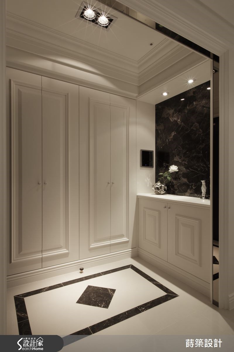 位於新北市的 35 坪居宅,在設計師規劃之下,透過建材及精緻工法,以新古典風格替空間定調,在白色背景中點綴少許灰調,替空間型塑亮點,打造出氣質滿分的甜蜜三口之家,快跟著小編一起走進來看看吧! 走進大門,可見玄關鞋櫃作出雕花裝飾,呈現精緻立體的美好畫面,一旁則採金屬點綴門框,挹注少許現代感;公領域呈開放式格局,以客廳落地窗引進明媚採光,營造愜意舒適的居家氣氛,搭配咖啡色石材電視牆、線板沙發背牆,佐以絨布沙發、水晶吊燈與威尼斯鏡等軟件點綴,彰顯濃郁典雅的氣質;餐廳則加入一整面灰鏡延展空間感,並作出白色線條框架,形成俐落有致的視覺景致,同時讓餐邊櫃呈對稱展示,讓居家藝品羅列作為絕美的裝飾;主臥空間則以浪漫紫調打底,映襯紫色窗紗透進的薄薄日光,開啟浪漫情調;女孩房則呈現清爽淺藍色調,創造年輕氛圍,同時於床頭嵌入雕花層板形成展示平檯,增添不少古典風采! 小編的最愛 設計師在更衣間內注入完善機能,但同時延續古典語彙,加入壁紙、線板等點綴,落實新古典之美,替女主人打造出實用、美觀的專屬梳妝天地!