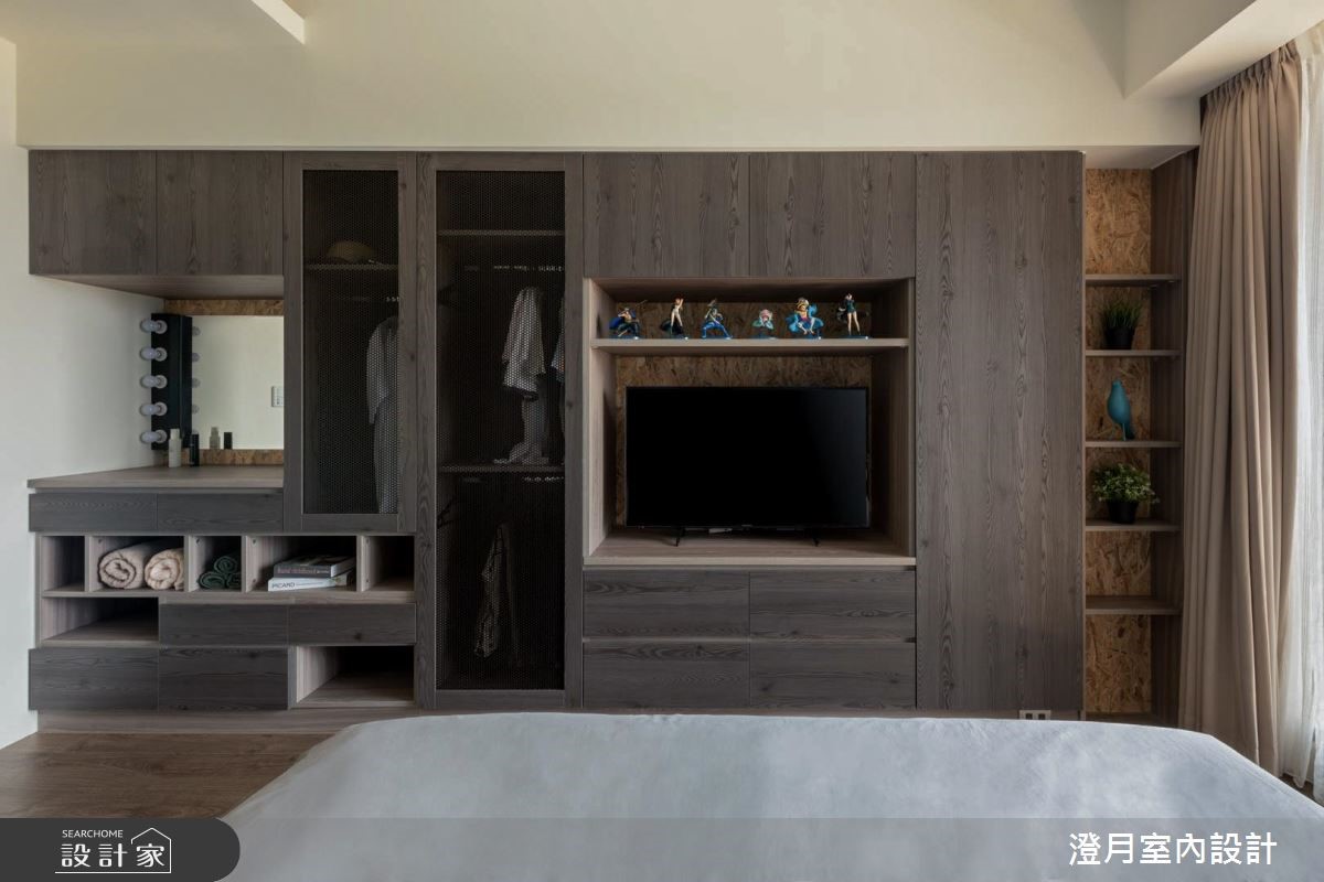 單身女屋主購入 25 坪的三房兩廳住宅,與母親和阿姨同住,在經過多次的討論後,設計師以女兒喜愛的工業風為底,融合長輩喜愛的貼心設計,讓一家三口和毛小孩們都能開心地生活。 玄關鞋櫃的門片,選擇斜貼木皮開孔夾擴張網,保持櫃體的通風,同時擴張網的英文字母,代表著女兒名字的縮寫,讓人一進門就看到專屬的居家端景。客廳電視牆以層板打造貓跳台,電視櫃下方也設置貓屋,讓毛小孩能穿梭其中。神明桌則融入跳色的收納櫃中,並配備抽拉盤來擺放供品,在新潮與傳統、美觀與實用中取得美好平衡。 小餐桌區塊採取一整牆的洞洞板,來收納屋主眾多的公仔收藏,同時層板也能給貓咪上下跳躍。主臥貫徹屋主喜愛的工業風,透過網狀鋁板的黑色衣櫃,結合掛衣鐵架及穀倉門櫃體,創造空間的粗獷性格,並滿足收納需求。而由於屋主有在家工作的機會,因此設計師在床頭規劃鐵框花磚桌面,方便她隨時上工。 小編的最愛 在房門的設計上,設計師除了為屋主預留狗洞、寫上家人的生日和縮寫之外,還客製化兩間浴室的跳色門片,標註上屋主偶像安室奈美惠引退的日期,塑造專屬的居家細節。