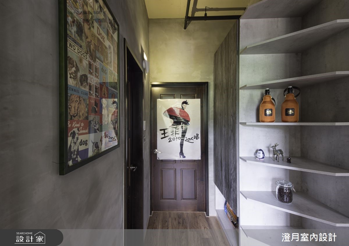 此案是屋主與哈士奇的居家生活,以個性化的Loft風格營造室內氛圍,拆除隔間牆、打造開放領域,並藉由架高木地板拉出領域層次;空間裡透過展示屋主的收藏與喜好,營造出充滿回憶與溫度的日常風貌。 入口右側以鞋櫃界定出玄關與餐廚領域,室內則利用架高木地板串連客廳與書房區,拆除沙發背牆後,形塑開放式書房,讓居家環境變得更寬闊,哈士奇也更能活動自如。電視牆以仿清水模的水泥砂漿做特殊塗料處理,傳遞樸實、個性化的味道,結合木紋收納櫃與展示層板,增添視覺的變化與活潑度,一旁則利用訂製世界地圖輸出壁貼的黑板漆,佈滿屋主旅行時的照片或明信片,讓旅遊的回憶成為一面風格端景牆;考量樑柱結構問題,餐廳的天花板特別以木作拼接方式呈現,且將餐桌與中島串連,滿足屋主平日喜愛烹調的習慣,牆面上搭建高低錯落的層板,陳列著平時收藏或被贈與的佳釀,偶爾小酌一番,或與三五好友相聚談心的催化劑。 小編的最愛 整體空間利用很多層板設計,陳列出屋主成長過程中、不同時期的收藏;書房壁面更設計大面積的開放書牆,滿足大量藏書,並以不同顏色的玻璃造型做妝點,讓視覺更添變化。