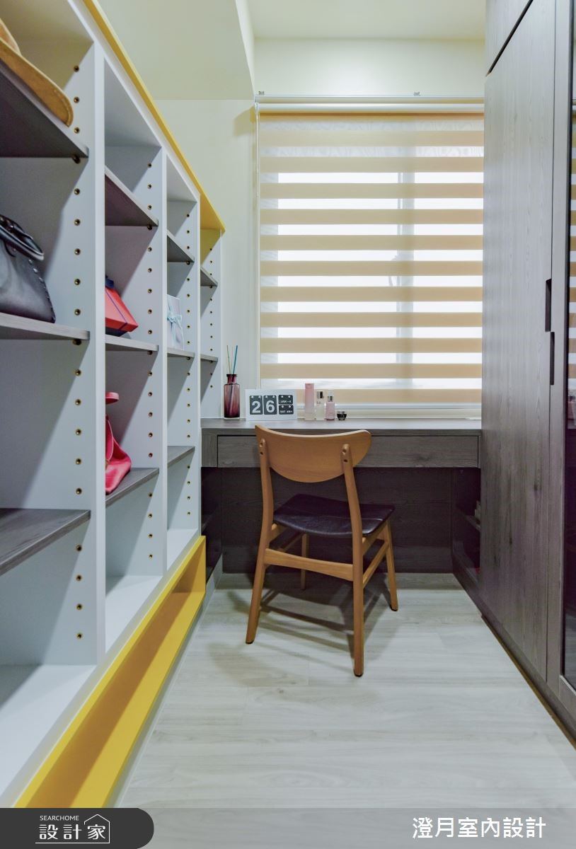 28 坪的現代風中古屋,作為新婚夫妻的愛巢,因此在空間中運用 20 多種的顏色相互搭配,佐以動線的重新規劃,創造寬敞明亮的鮮豔居家,也為將來迎接新生預作準備。 玄關選擇弧形的收納櫃,配合木紋穿鞋椅,一進門就感受不同的清新活力,即便日後家裡有小朋友也不怕碰撞到尖角,提升室內的安全度。公領域採取開放式的設計,讓光線能夠延伸到較暗的廚房區域,而中島結合花磚修飾與金色水龍頭,加上牆面的洞洞板,讓此處成為居家最美的構圖之一,又能具有豐富機能性。 客廳利用黑色文化石裝飾電視牆,在鮮黃展示櫃、Tiffany 藍沙發的映襯下,表現沉穩的立面質感;一旁臥榻區則藉由淺色木紋,框定出一個日光空間,提升居家的溫暖感受。主臥透過灰色妝點床頭牆,帶來悠閒平穩的視覺氛圍,而黃色電視牆分隔出有梳妝檯的更衣室,牆面後方配置了包包的收納架,滿足夫妻倆的生活需求。 小編的最愛 設計師在前往私領域的廊道,以漸層式的色彩牆面隱藏主臥門板,並且局部設置磁鐵板,增添整個空間的變化,給屋主隨興使用的彈性。