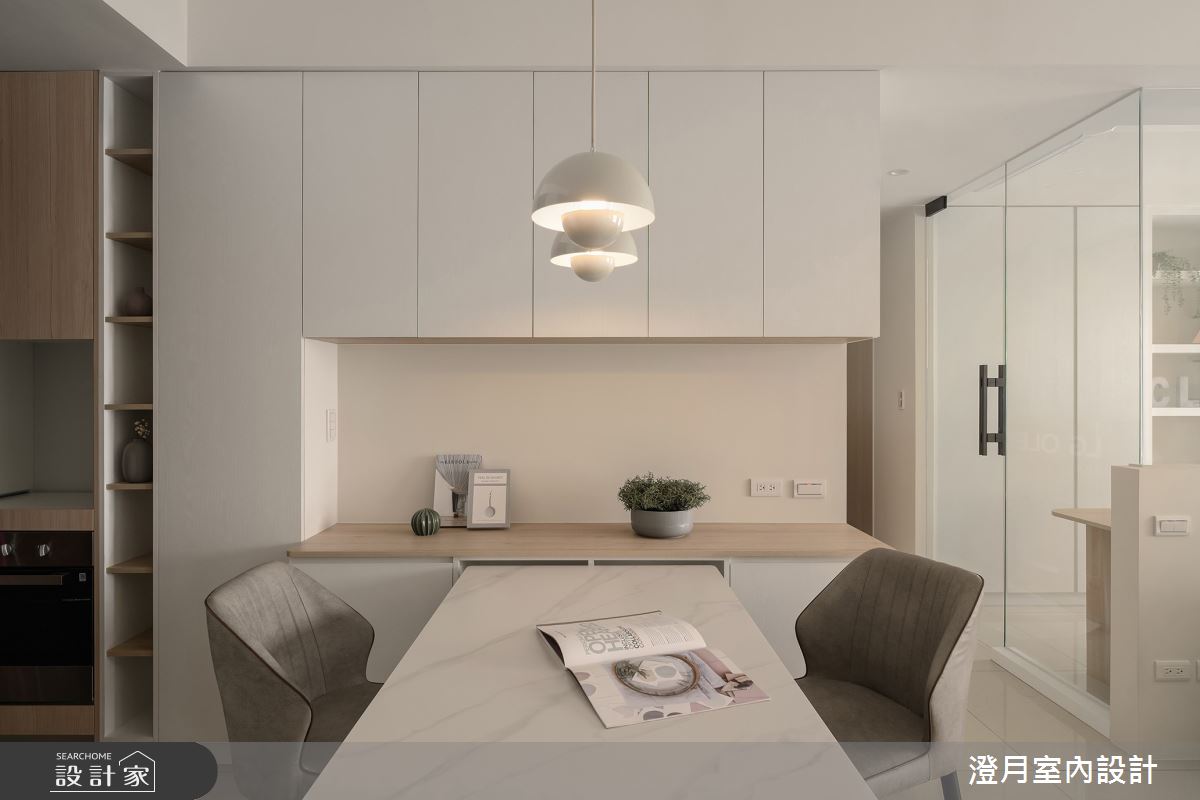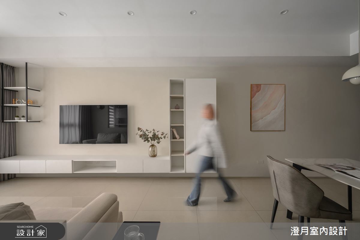 來自澄月室內設計的26坪現代風住宅案,屋主一家人共有1位大人、2位小孩,是一間單層預售屋的三房格局,設計師藉由建材以乳膠漆、鐵件、系統板材、茶鏡、珐瑯板的搭配應用,實現一家人的理想生活。