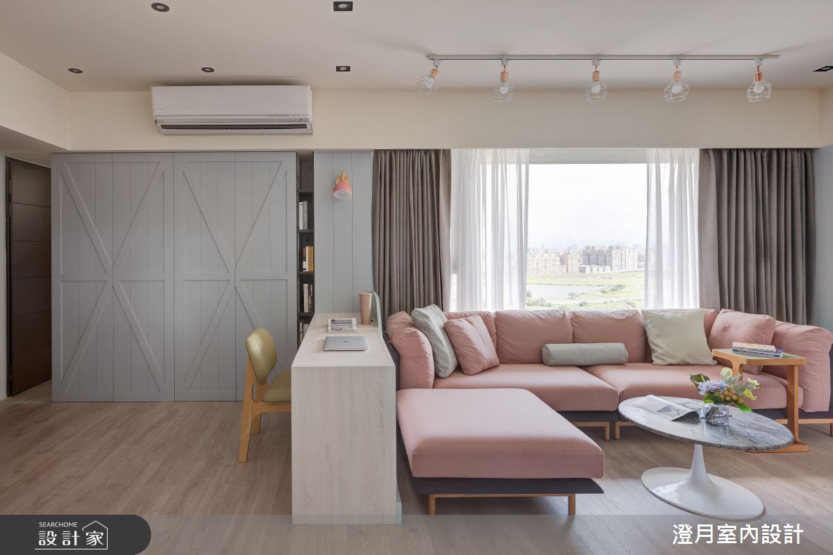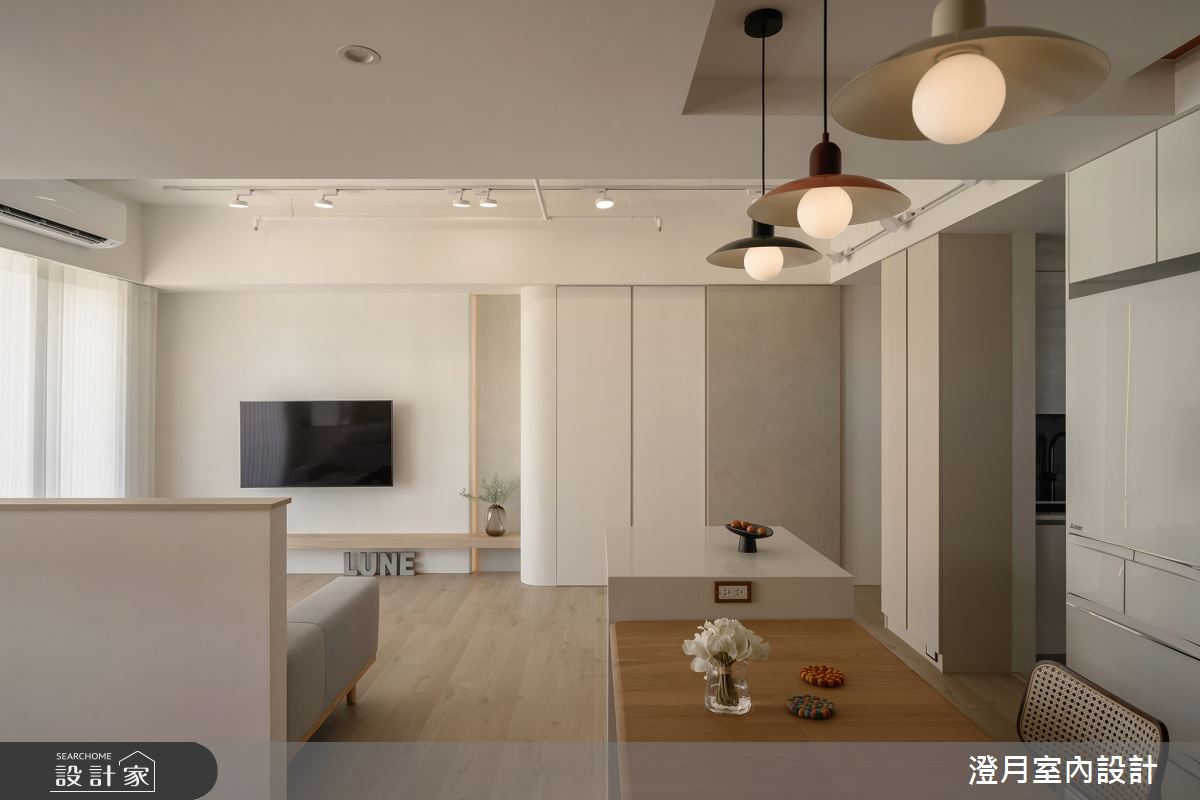 來自澄月室內設計的22坪北歐風住宅案,屋主一家人共有1位大人,是一間單層新成屋(5年以下)的一房格局,設計師藉由建材以乳膠漆、超耐磨木地板、鐵件、木作貼皮、系統板材、軌道燈的搭配應用,實現一家人的理想生活。