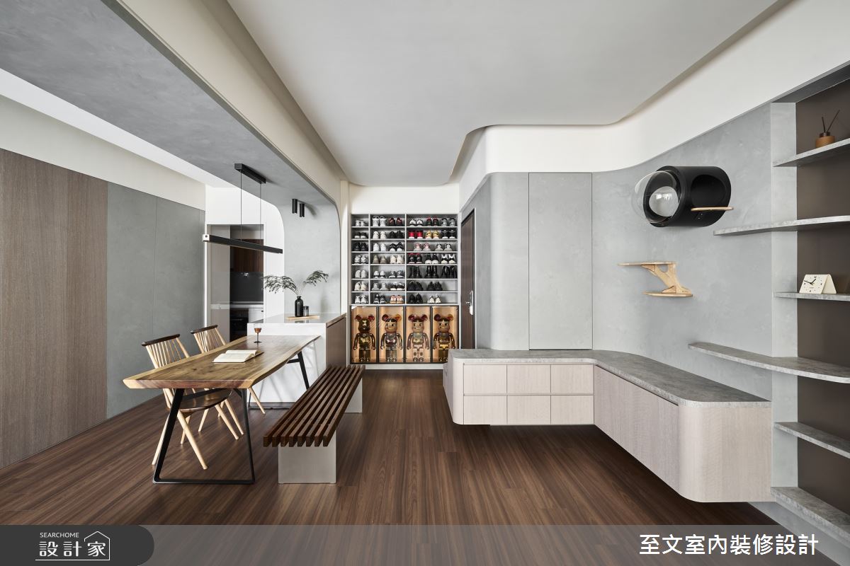 由至文室內裝修設計精心規劃的40坪三房住宅空間,家庭成員一共有3位大人、2位小孩。因應屋主需求,設計師運用北歐風作為主軸,搭配乳膠漆、六角磚/蜂巢磚、超耐磨木地板、茶玻、烤玻、木作貼皮、系統板材、人造石、噴漆、五金、特殊漆,打造全家人的夢想家居。