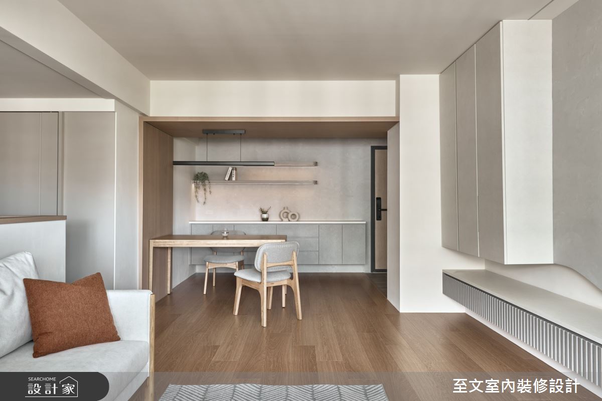由至文室內裝修設計精心規劃的23坪三房住宅空間,家庭成員一共有2位大人。因應屋主需求,設計師運用北歐風作為主軸,搭配油漆、PVC地板、灰鏡、木皮、美耐板、系統櫃,打造全家人的夢想家居。