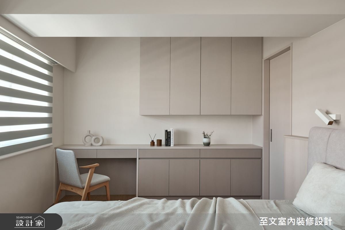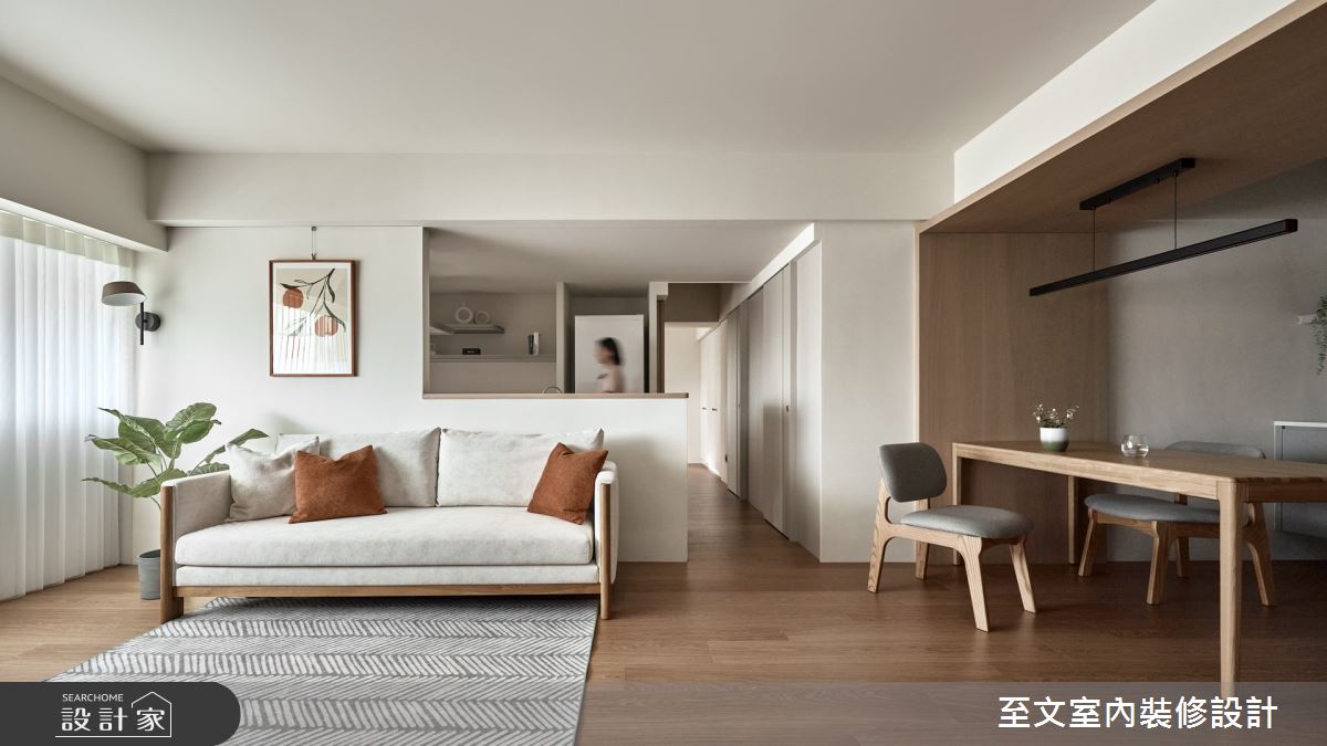 本案為至文室內裝修設計的30坪北歐風新成屋(5年以下)設計作品,格局為單層三房的居住空間。居住成員包含2位大人。全室建材的搭配,應用特殊漆、木地板、茶玻、系統板材、人造石、銘木板,展現溫馨的居家氛圍。