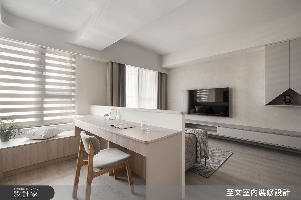 本案為至文室內裝修設計的24坪簡約風新成屋(5年以下)設計作品,格局為單層兩房的居住空間。居住成員包含2位大人。全室建材的搭配,應用特殊漆、系統櫃、木地板、人造石,展現溫馨的居家氛圍。