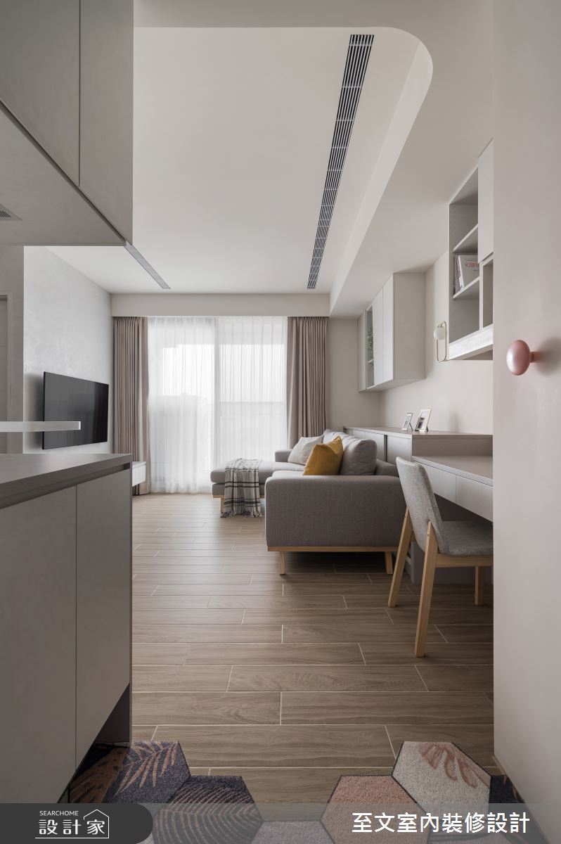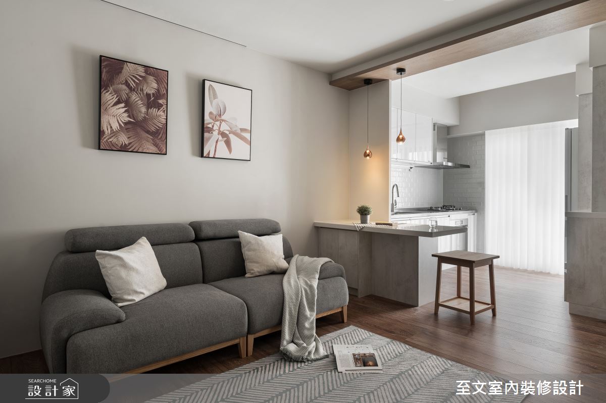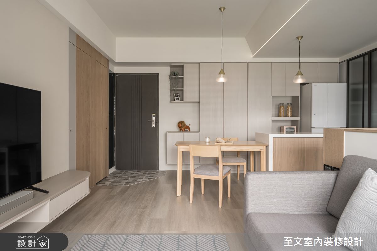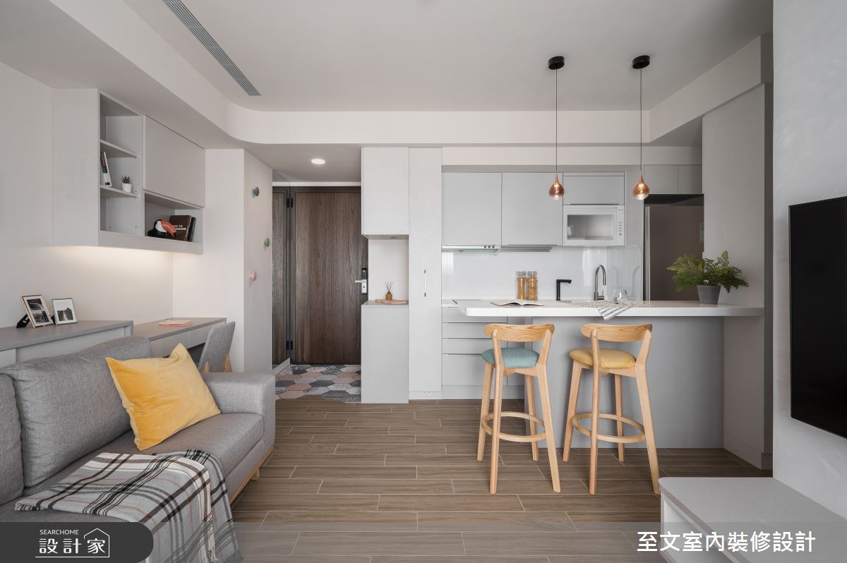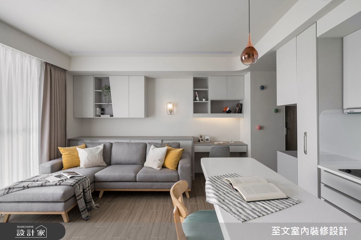 由至文室內裝修設計精心規劃的20坪兩房住宅空間,家庭成員一共有2位大人。因應屋主需求,設計師運用北歐風作為主軸,搭配系統櫃、木地板、木工,打造全家人的夢想家居。