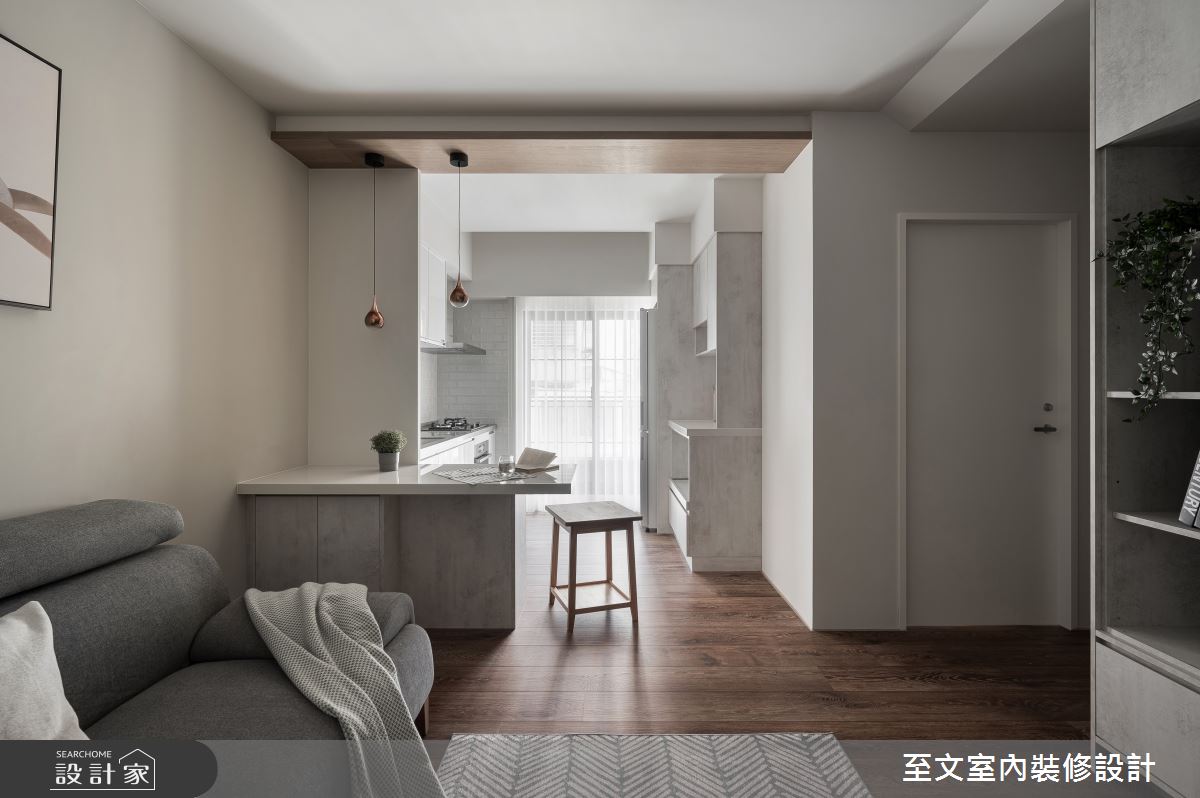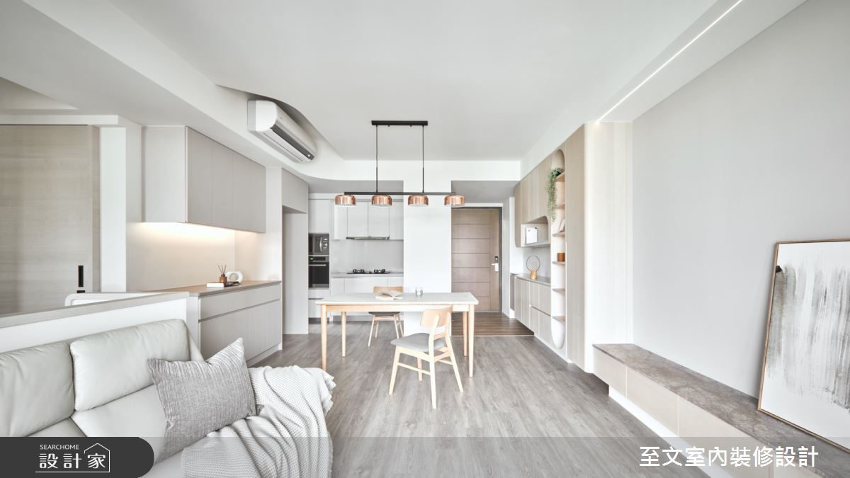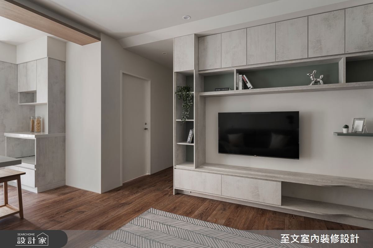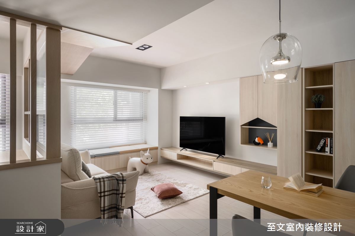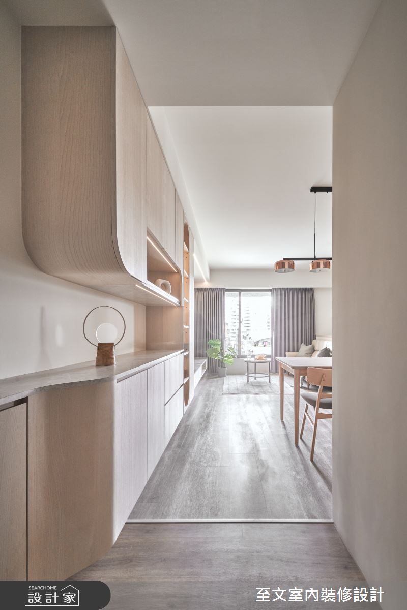 由至文室內裝修設計精心規劃的20坪兩房住宅空間,家庭成員一共有2位大人。因應屋主需求,設計師運用北歐風作為主軸,搭配系統櫃、木地板、木工,打造全家人的夢想家居。