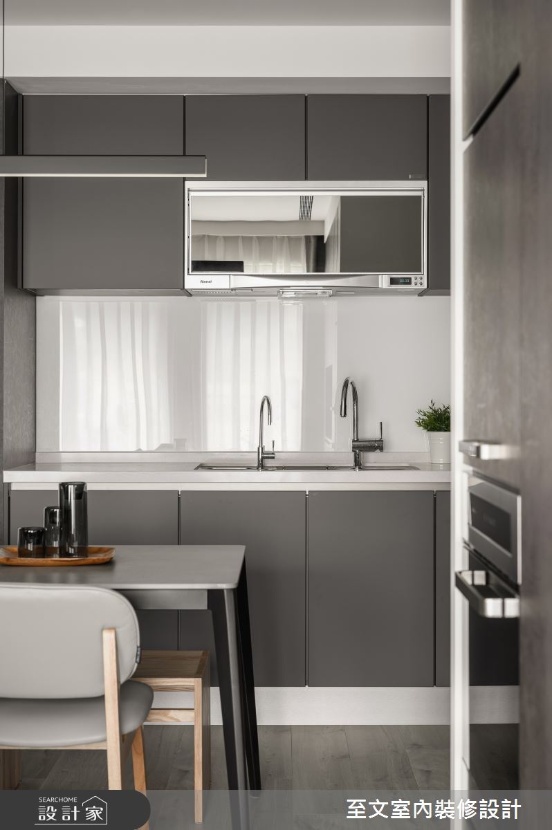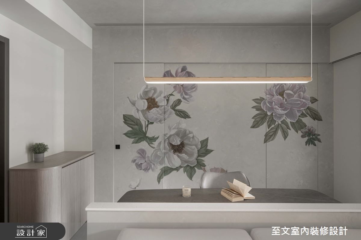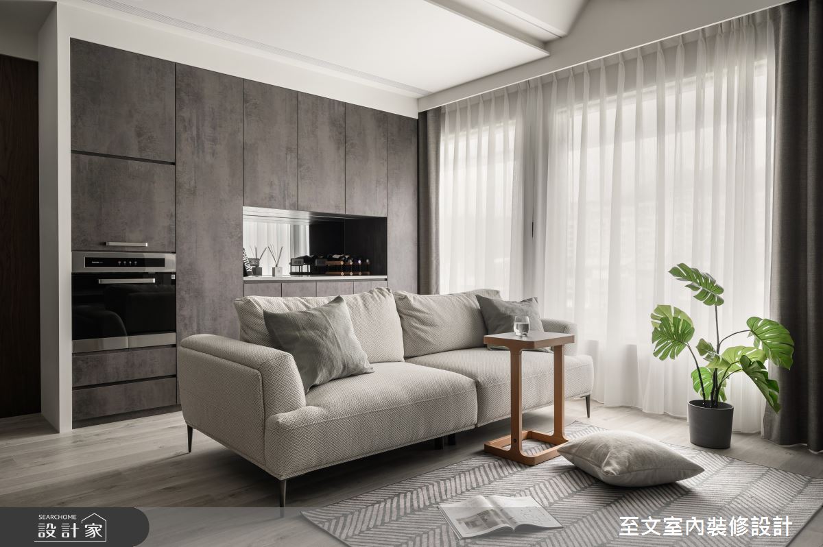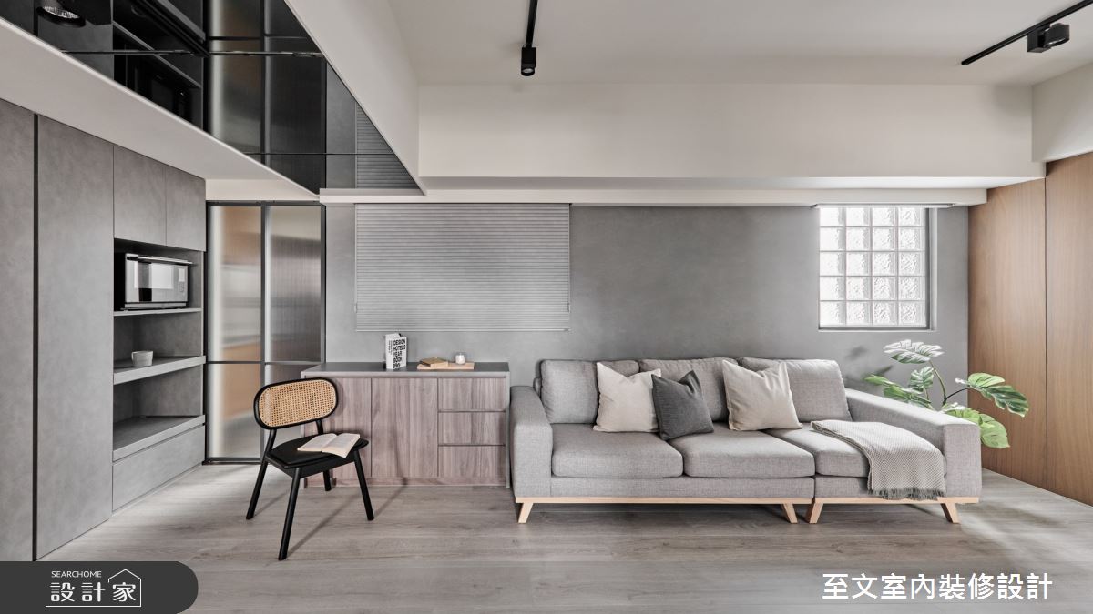 由至文室內裝修設計精心規劃的15坪一房住宅空間,家庭成員一共有1位大人。因應屋主需求,設計師運用混搭風作為主軸,搭配系統櫃、木地板、特殊漆、灰面鏡,打造全家人的夢想家居。