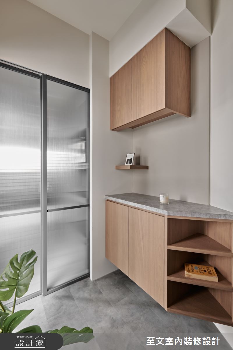 來自至文室內裝修設計的19坪簡約風住宅案,屋主一家人共有2位大人,是一間單層的兩房格局,設計師藉由建材以木地板、系統櫃、木皮、噴漆的搭配應用,實現一家人的理想生活。