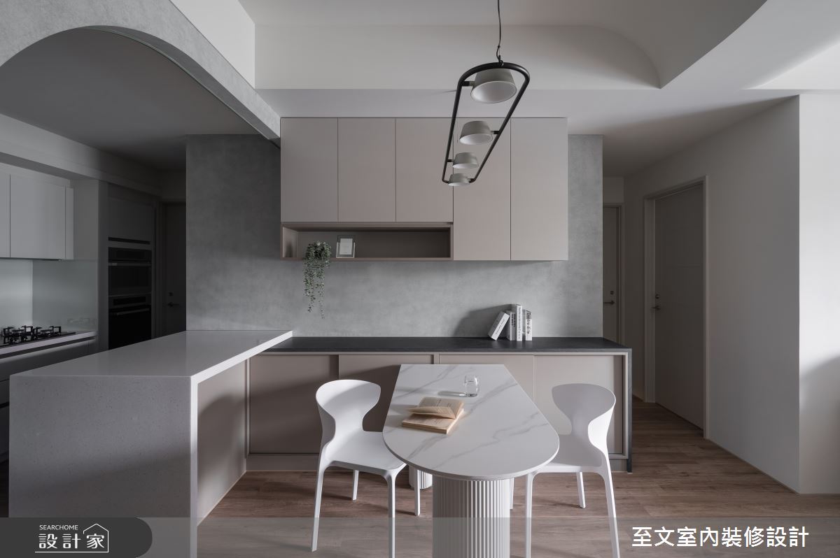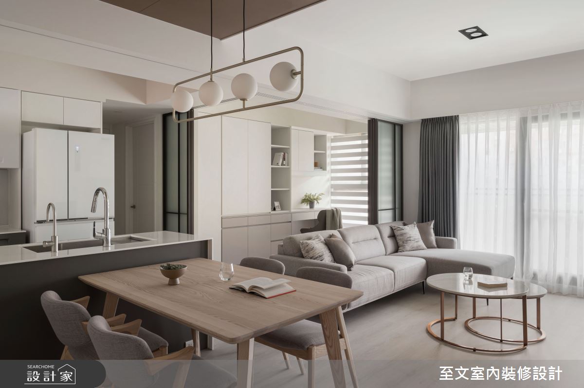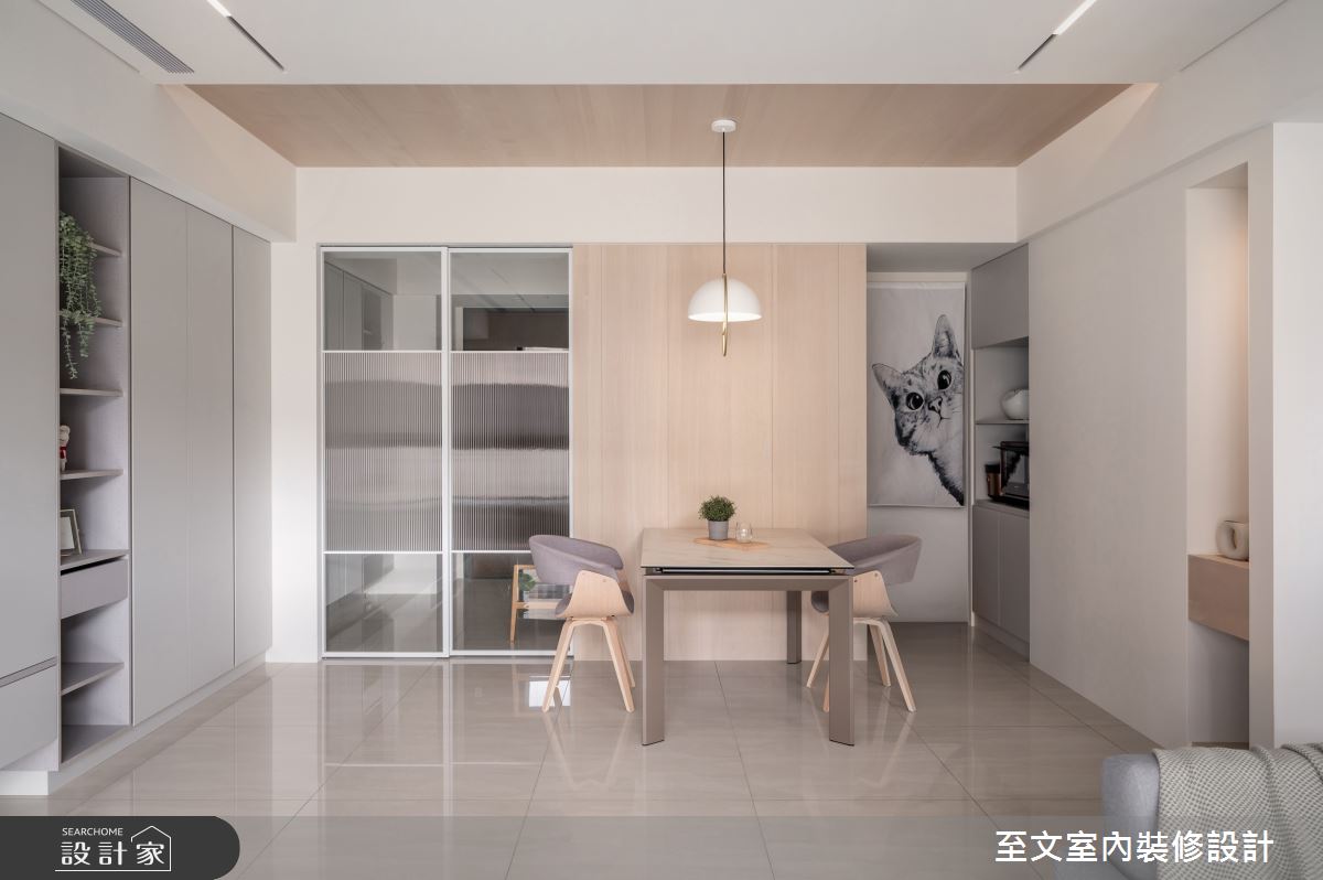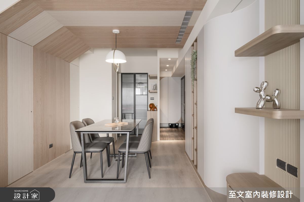 來自至文室內裝修設計的26.5坪簡約風住宅案,屋主一家人共有2位大人,是一間單層新成屋(5年以下)的三房格局,設計師藉由建材以系統櫃、鋁框門、木皮、油漆的搭配應用,實現一家人的理想生活。