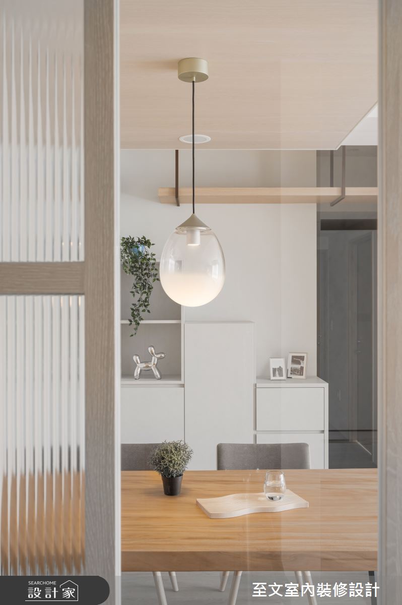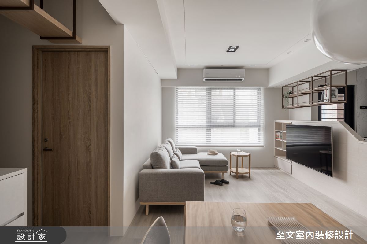 至文室內裝修設計以木皮、系統櫃、玻璃、鐵件、油漆、木地板的搭配應用,呈現日式風居家氛圍,將此間20坪、兩房、單層、新成屋(5年以下)打造成舒適愜意的家庭空間,完成2位大人全家人的夢想之居。