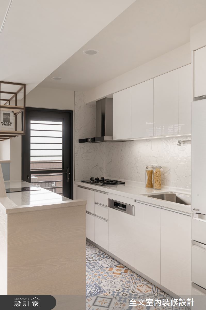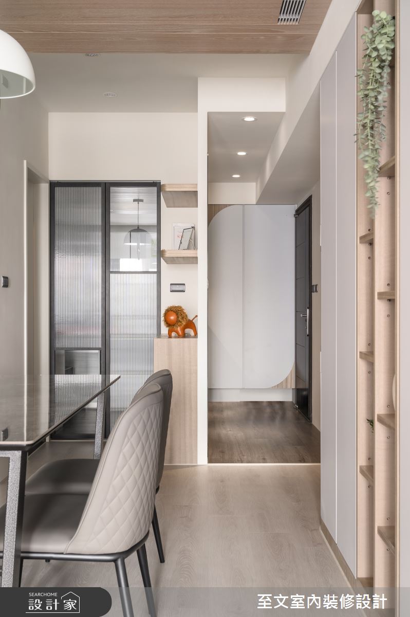 來自至文室內裝修設計的22坪北歐風住宅案,屋主一家人共有2位大人、2位小孩,是一間單層中古屋(5~15年)的三房格局,設計師藉由建材以系統櫃、木皮、美耐板、玻璃鋁框、木底板、噴漆的搭配應用,實現一家人的理想生活。