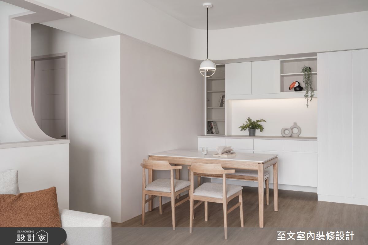 本案為至文室內裝修設計的24坪簡約風新成屋(5年以下)設計作品,格局為單層兩房的居住空間。居住成員包含2位大人。全室建材的搭配,應用特殊漆、系統櫃、木地板、人造石,展現溫馨的居家氛圍。