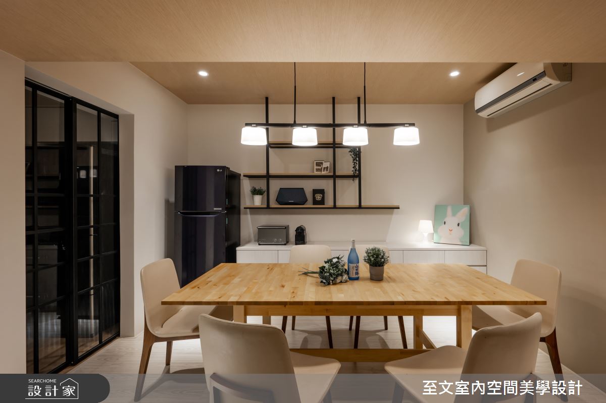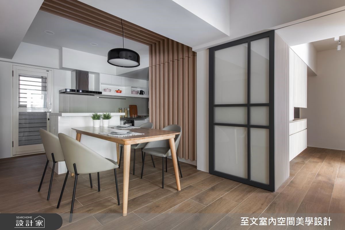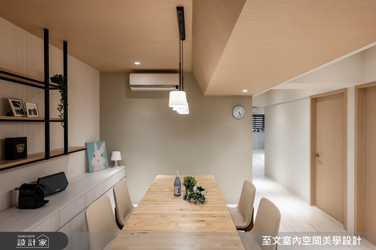 來自至文室內空間美學設計的32坪北歐風住宅案,屋主一家人共有2位大人、2位小孩,是一間單層中古屋(5~15年)的三房格局,設計師藉由建材以系統櫃、乳膠漆、魚骨木地板、鐵件的搭配應用,實現一家人的理想生活。